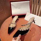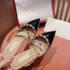 Rockstud Slingback Ballerina Flats Black Leather Cross Straps