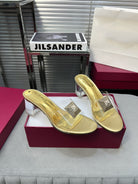 Heeled Sandals 6cm with Crystal Square Buckle Gold