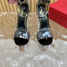 HIGH SANDAL 14CM IN BLACK CALFSKIN AND TRANSPARENT PVC