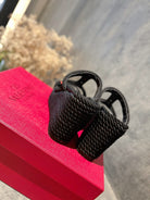 ROCKSTUD LAMINATED NAPPA WEDGE SANDAL 100 MM BLACK
