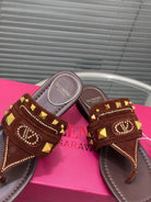 VT Rockstud Thong Sandals Brown Suede