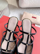 Rockstud Wispy Calfskin Mule 65mm Shiny Black