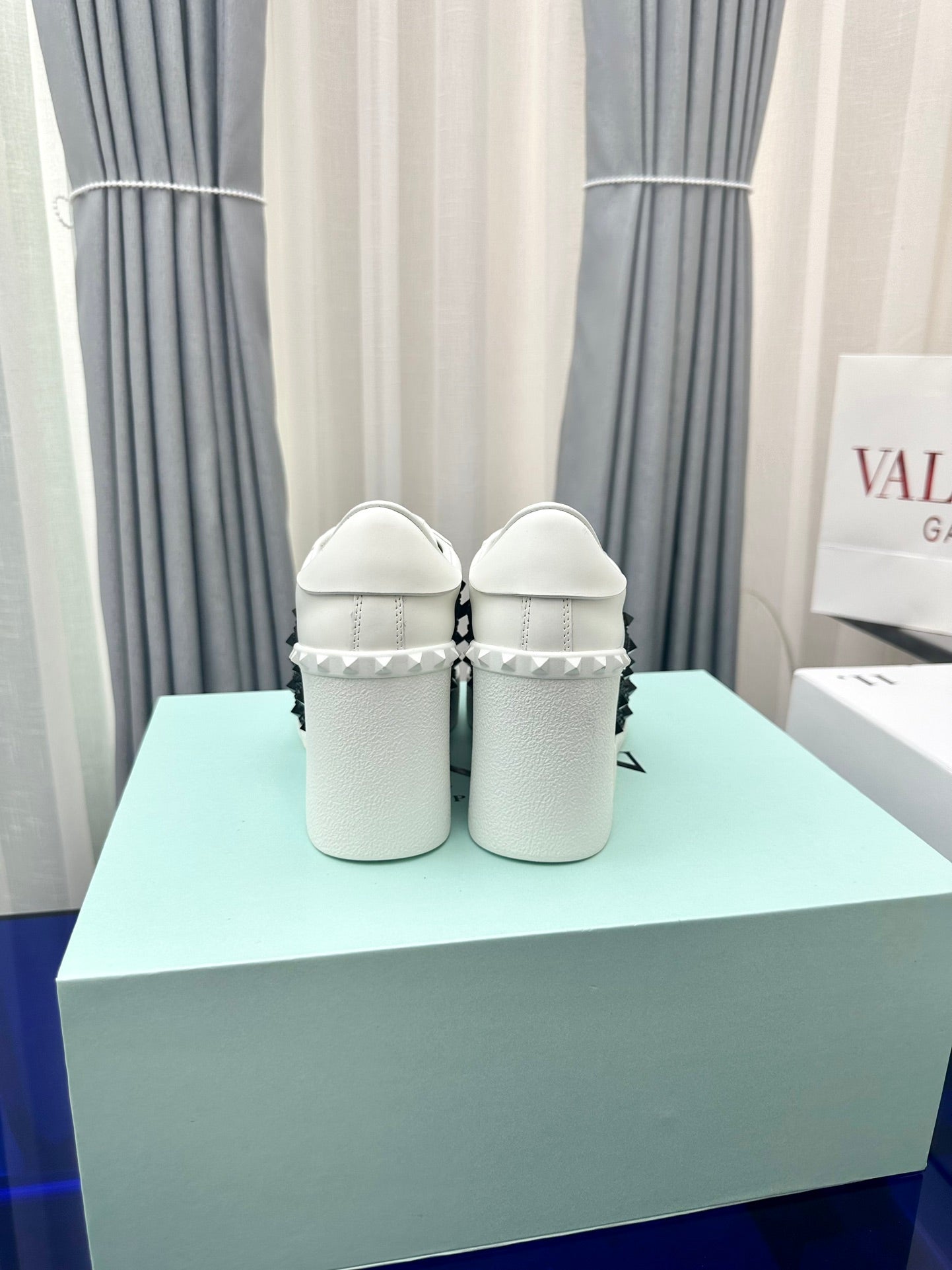 FLATFORM ROCKSTUD UNTITLED SNEAKER IN WHITE MIX BLACK CALFSKIN WITH RHINSTONES