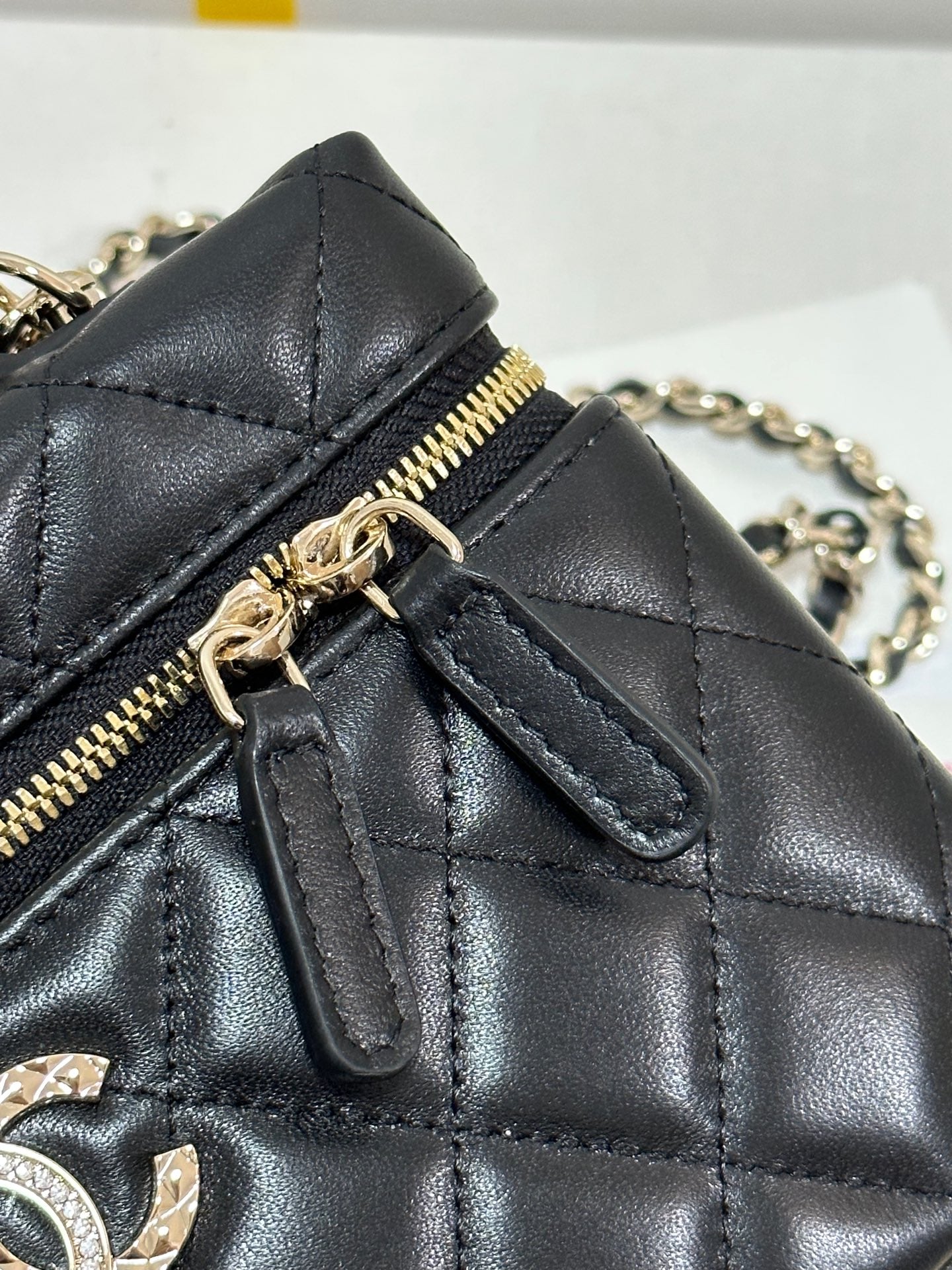 CC 25C Vanity Case 19.5cm Black Hanel Sheepskin Light Gold Hardware