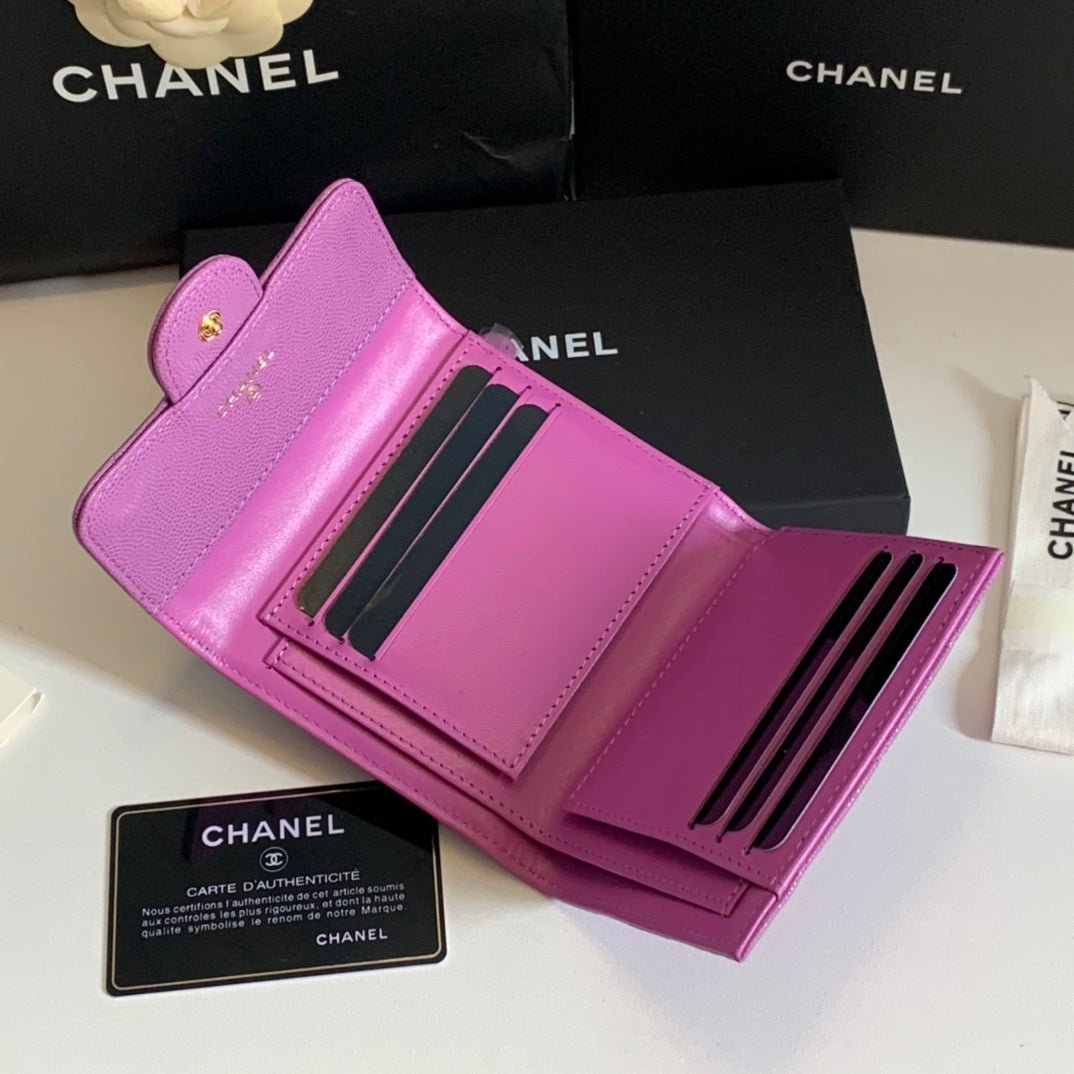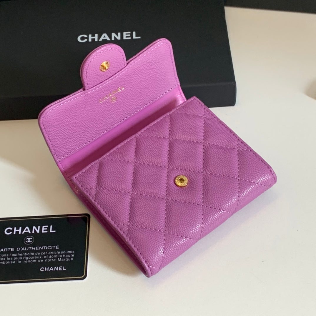 CC FLAP CARD HOLDER 11.5 HOT PINK GRAINED CALFSKIN GOLD ICON