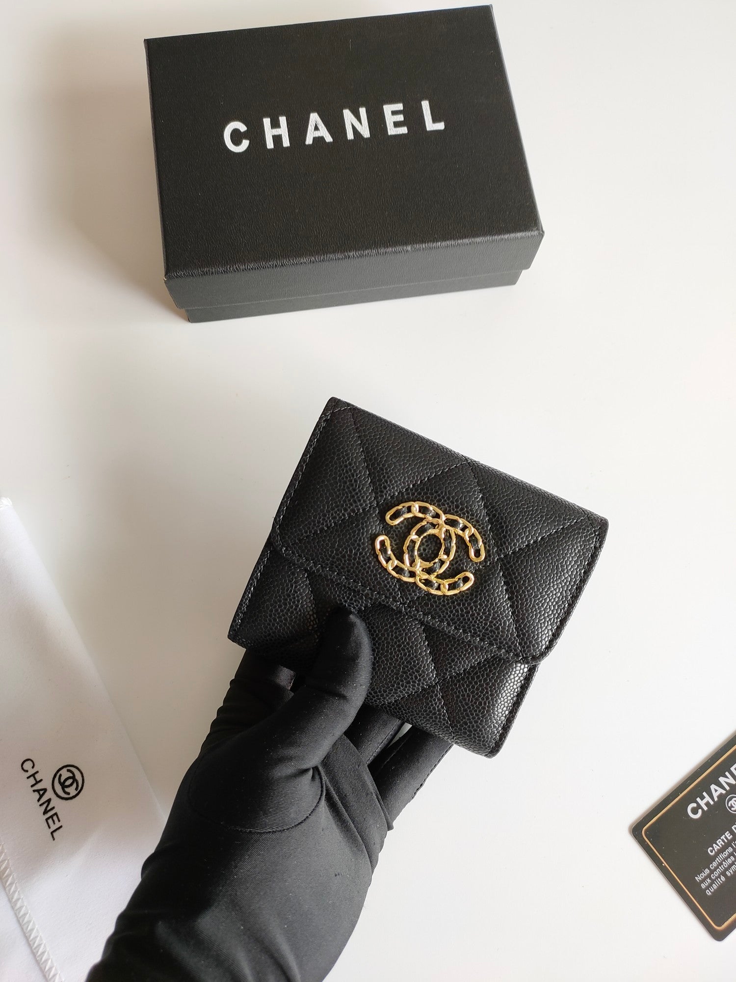 CC SQUARE PURSE 12 BLACK GRAINED CALFSKIN GOLD ICON