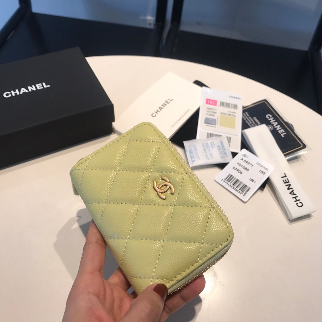 CC ZIPPED COIN BASIC PURSE 11 LIGHT YELLOW CALFSKIN GOLD ICON
