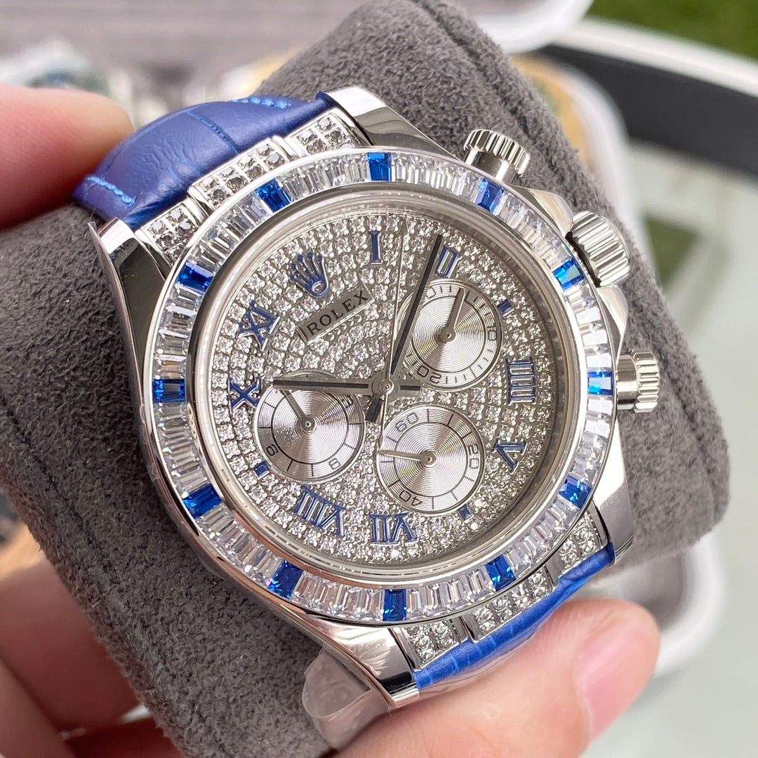 DAYTONA 40MM CUSTOM CARBON FILBER BLACK DIAL NAVY LEATHER
