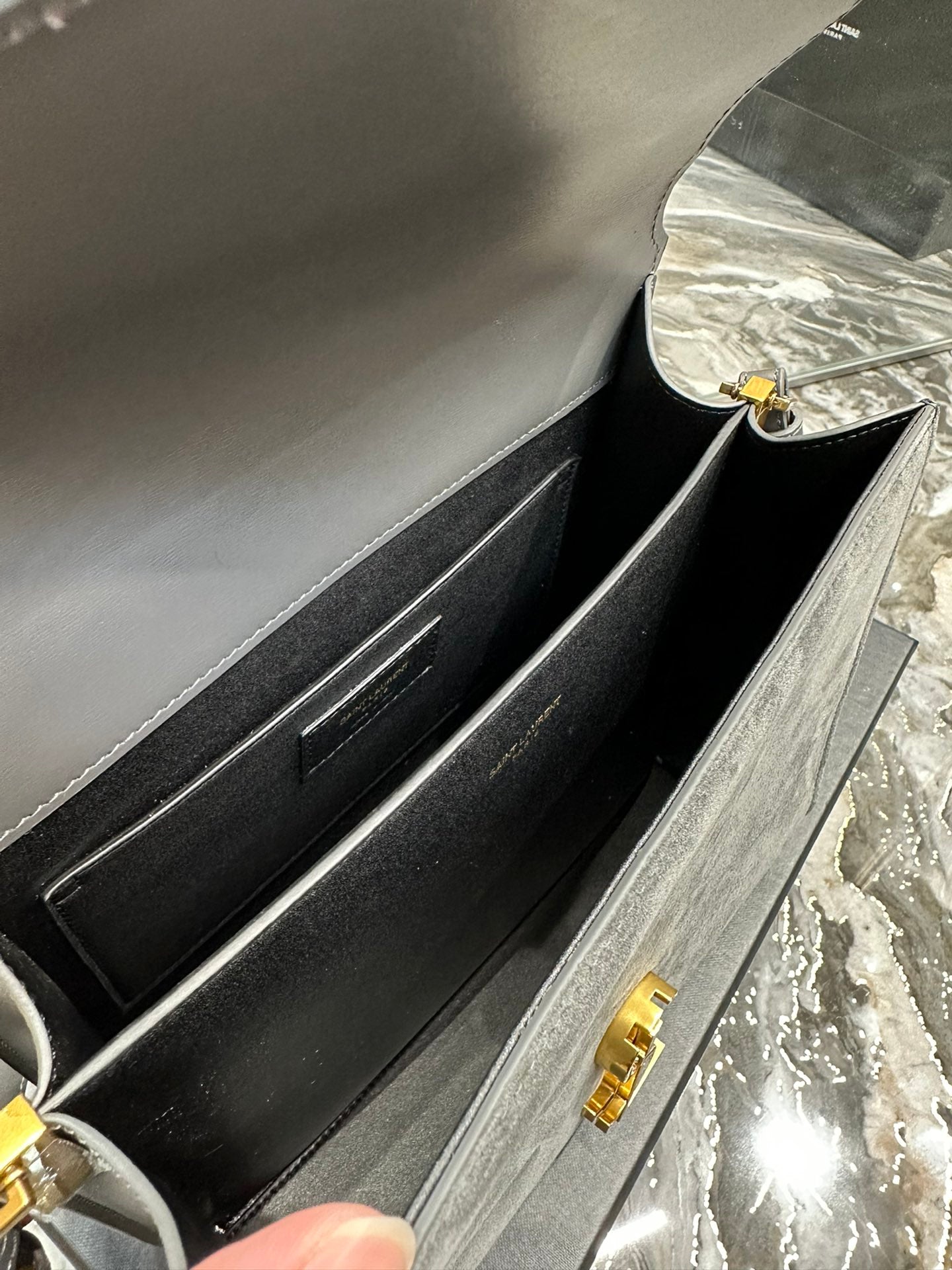 - Swivel clasp, YSL monogram, adjustable chain strap.