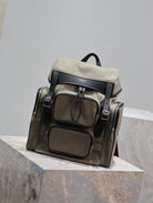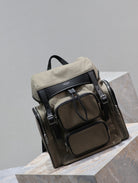 CITY MULTI-POCKET BACKPACK 42 IN KHAKI GREEN NYLON AND BLACK SMOOTH CALFSKIN