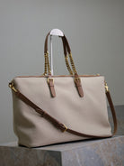 TRAVEL BAG 48 IN WHITE CANVAS AND BROWN LEATHER TRIM GOLD HARDWARE
