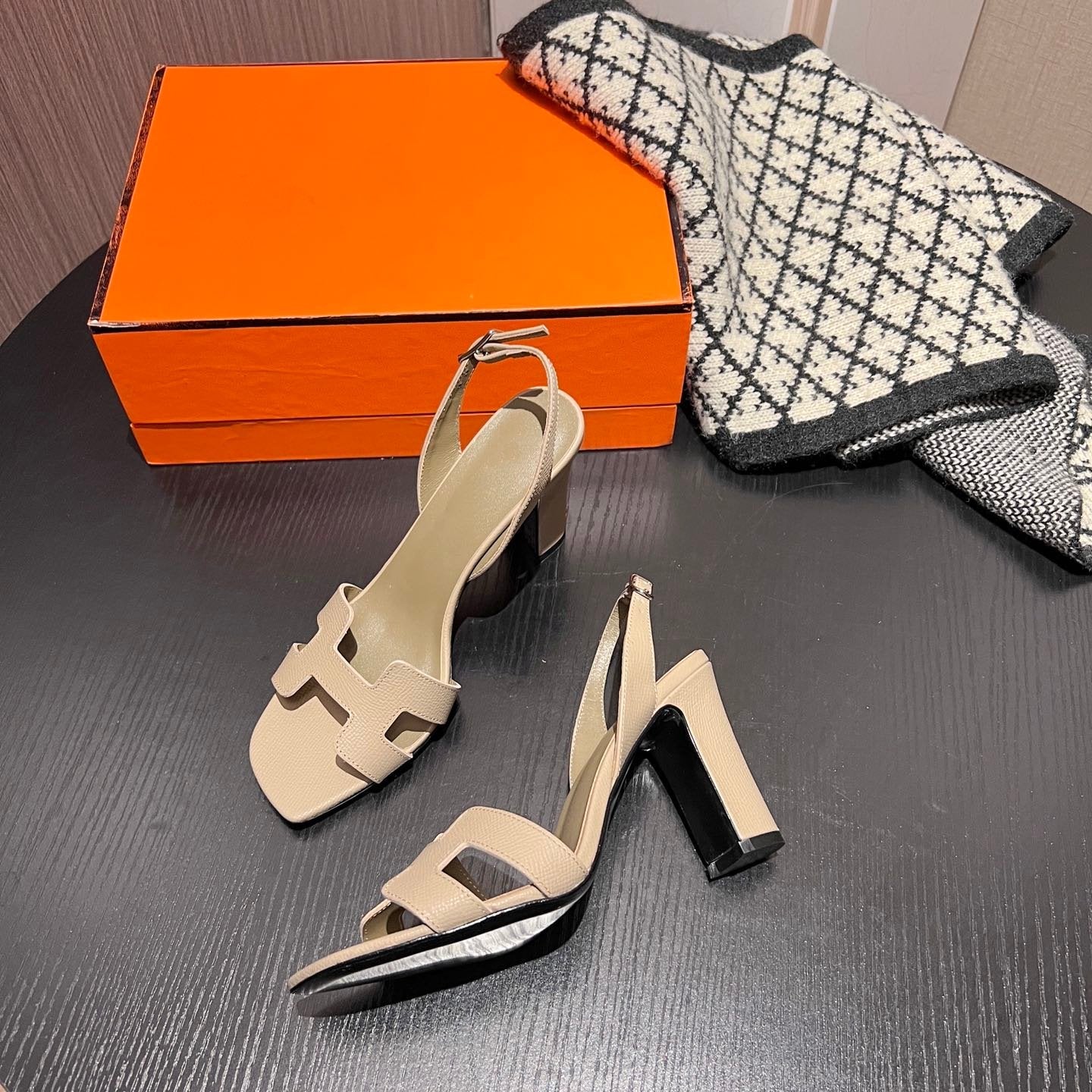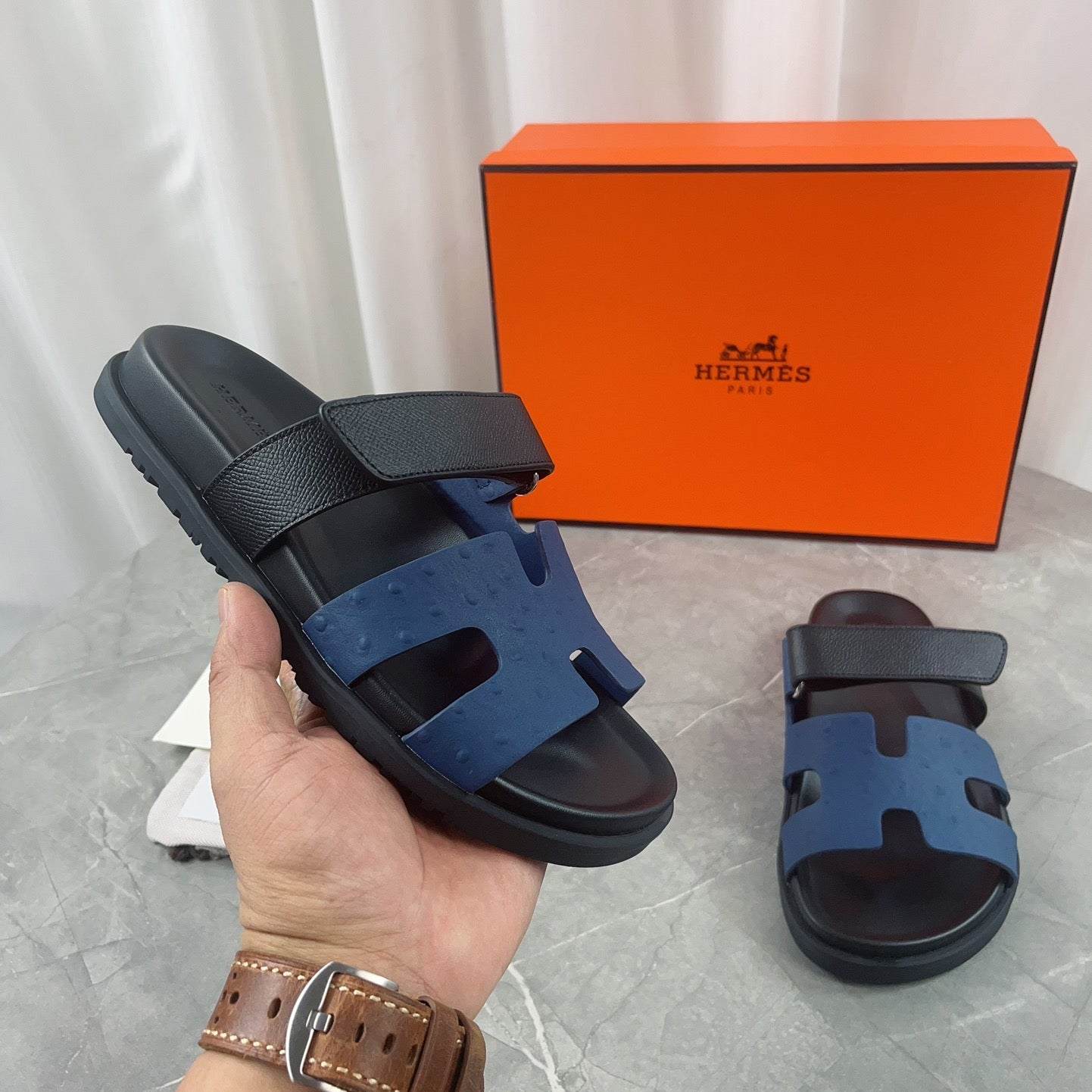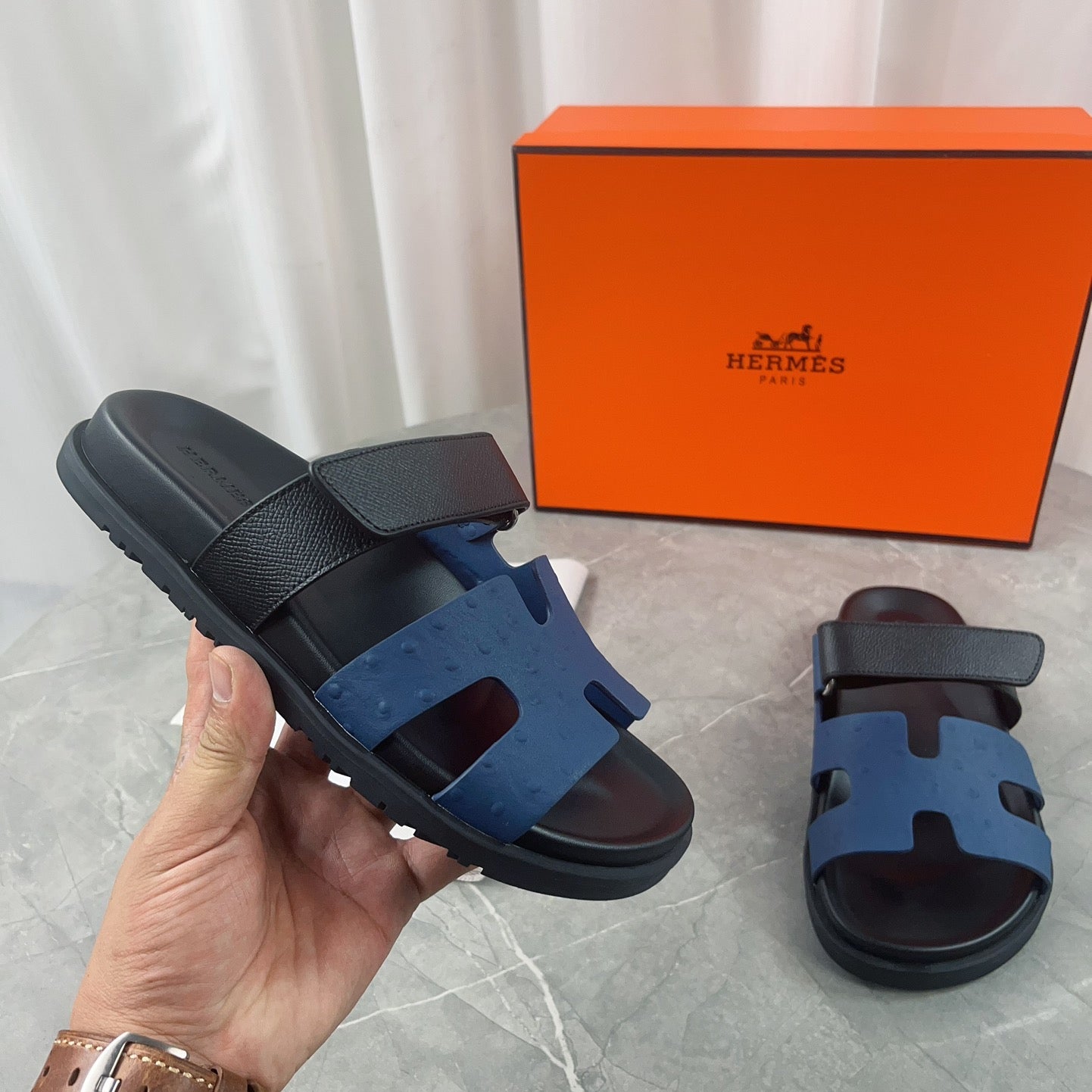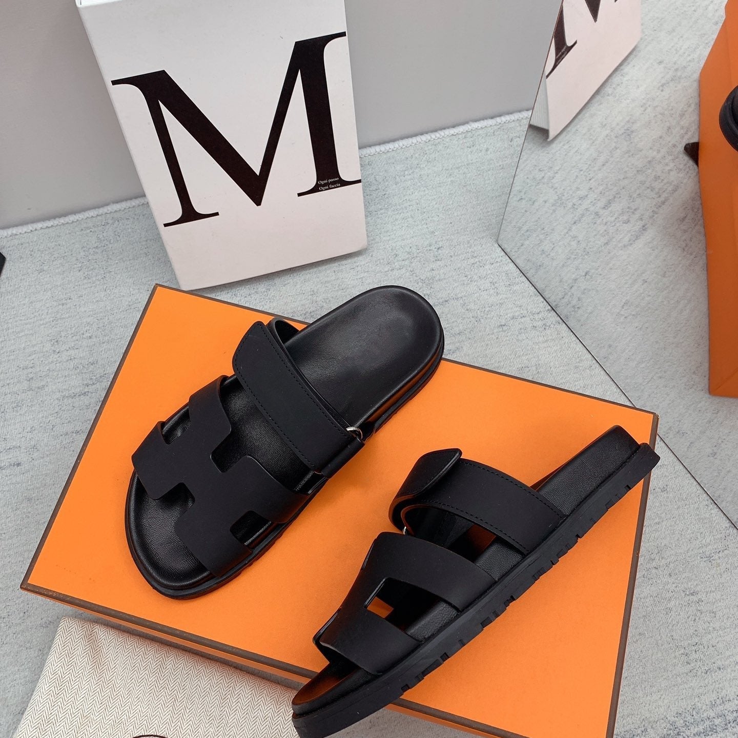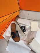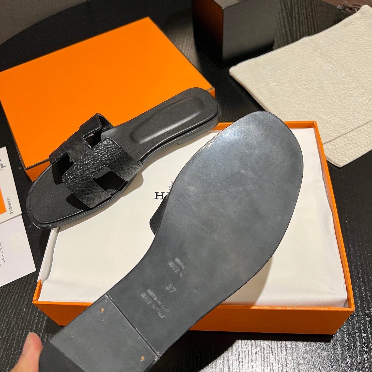 • Material: Sandal in calfskin with iconic "H" cut-out.