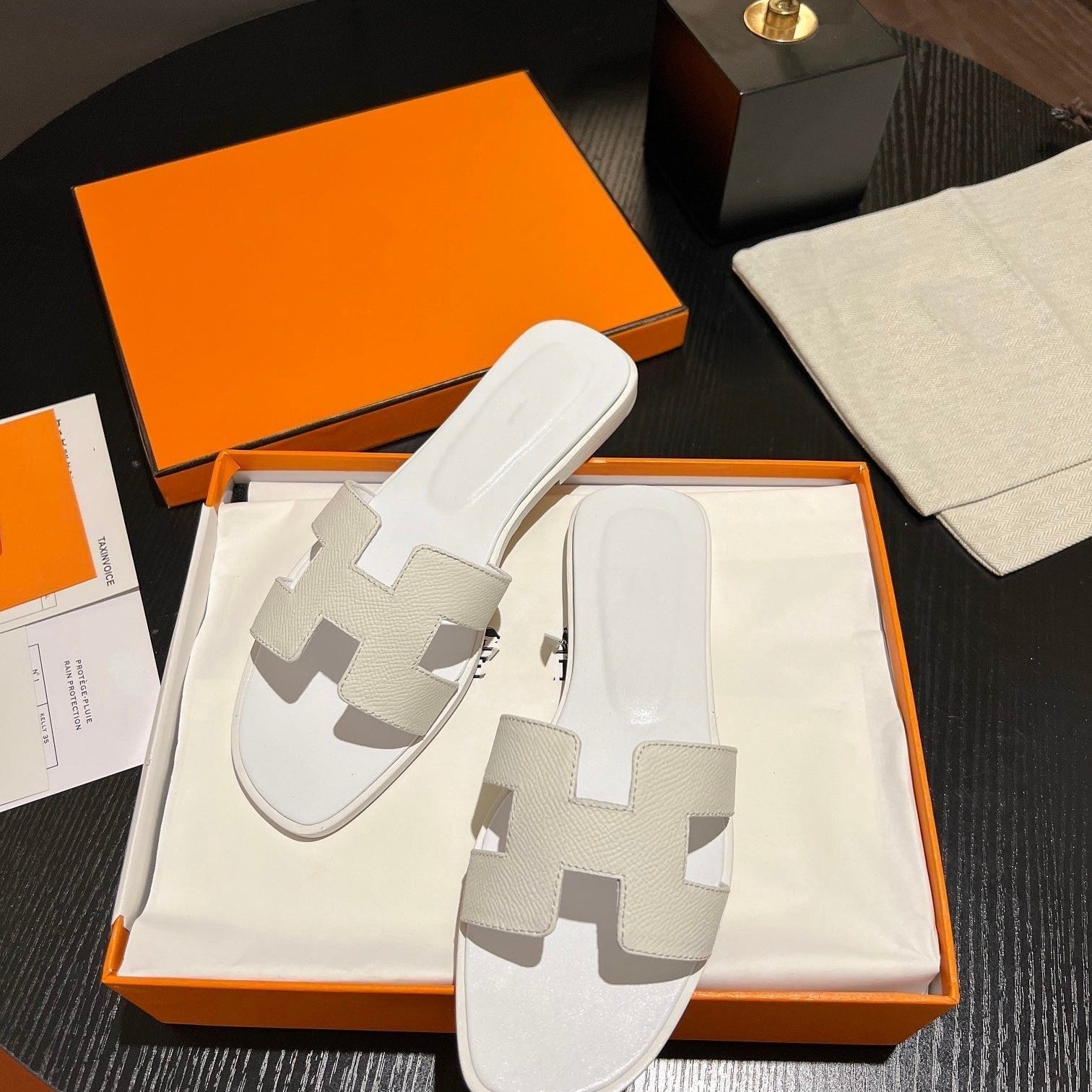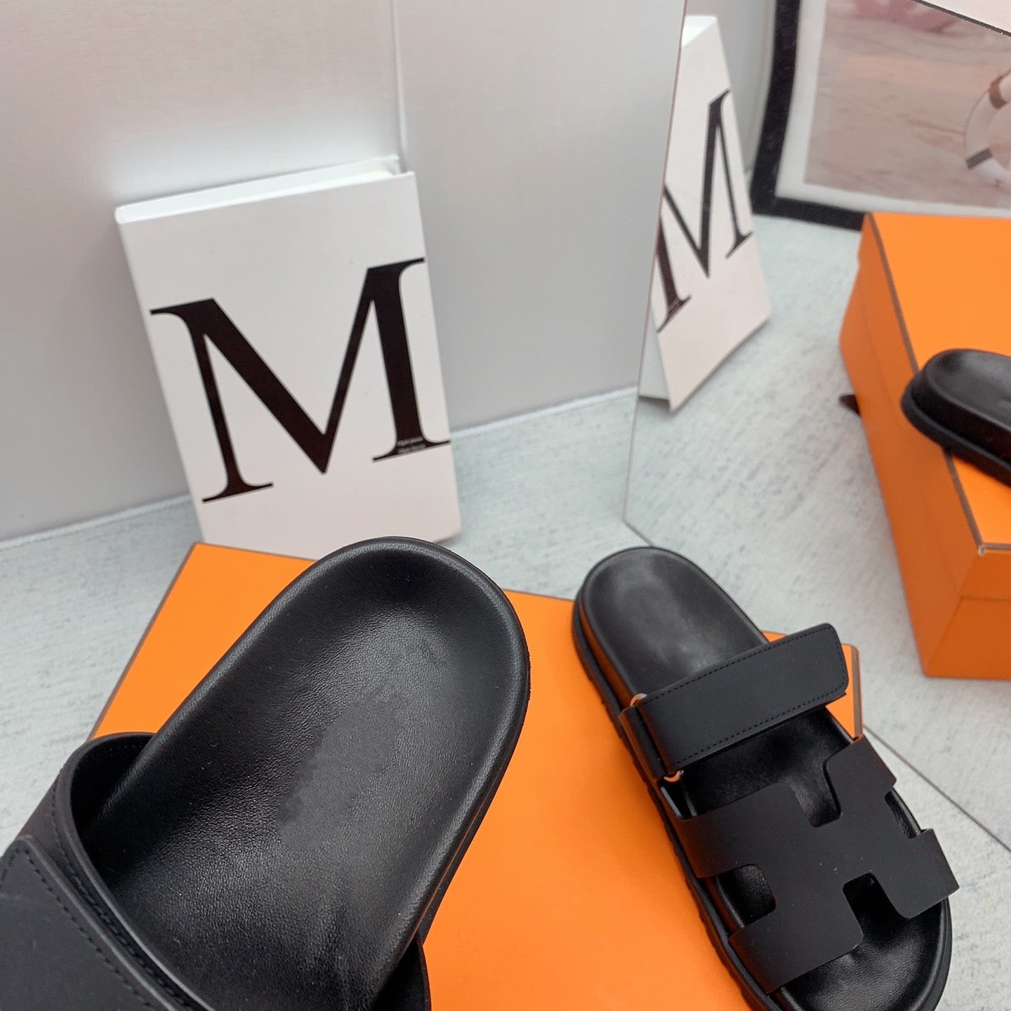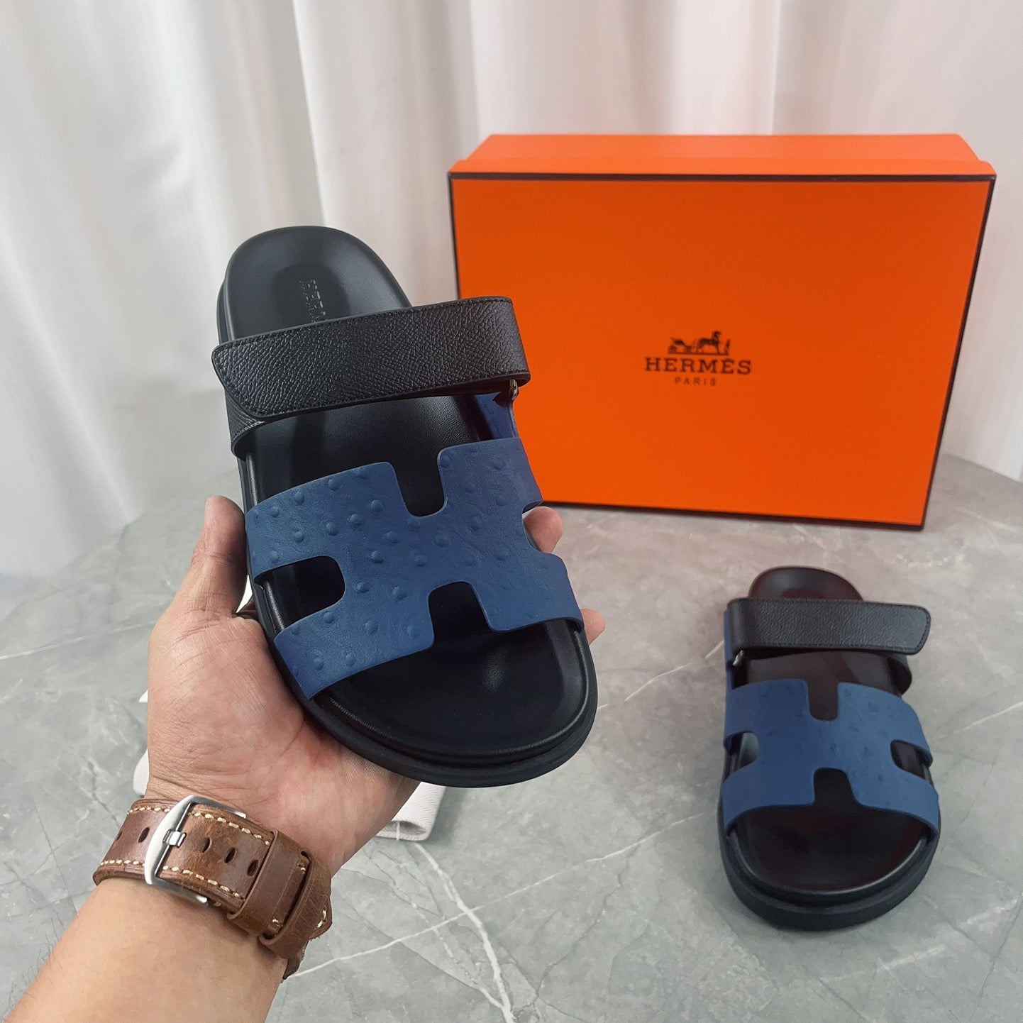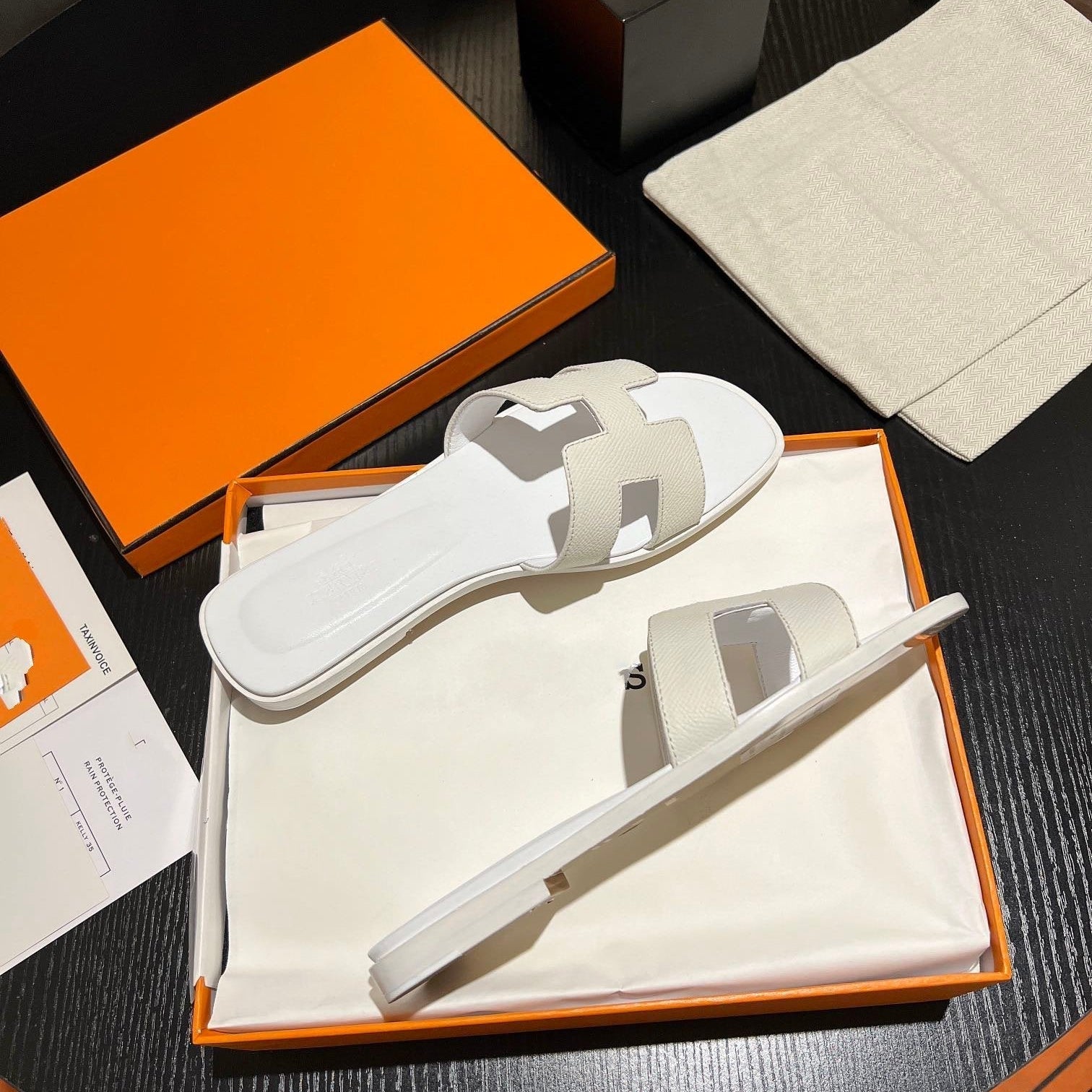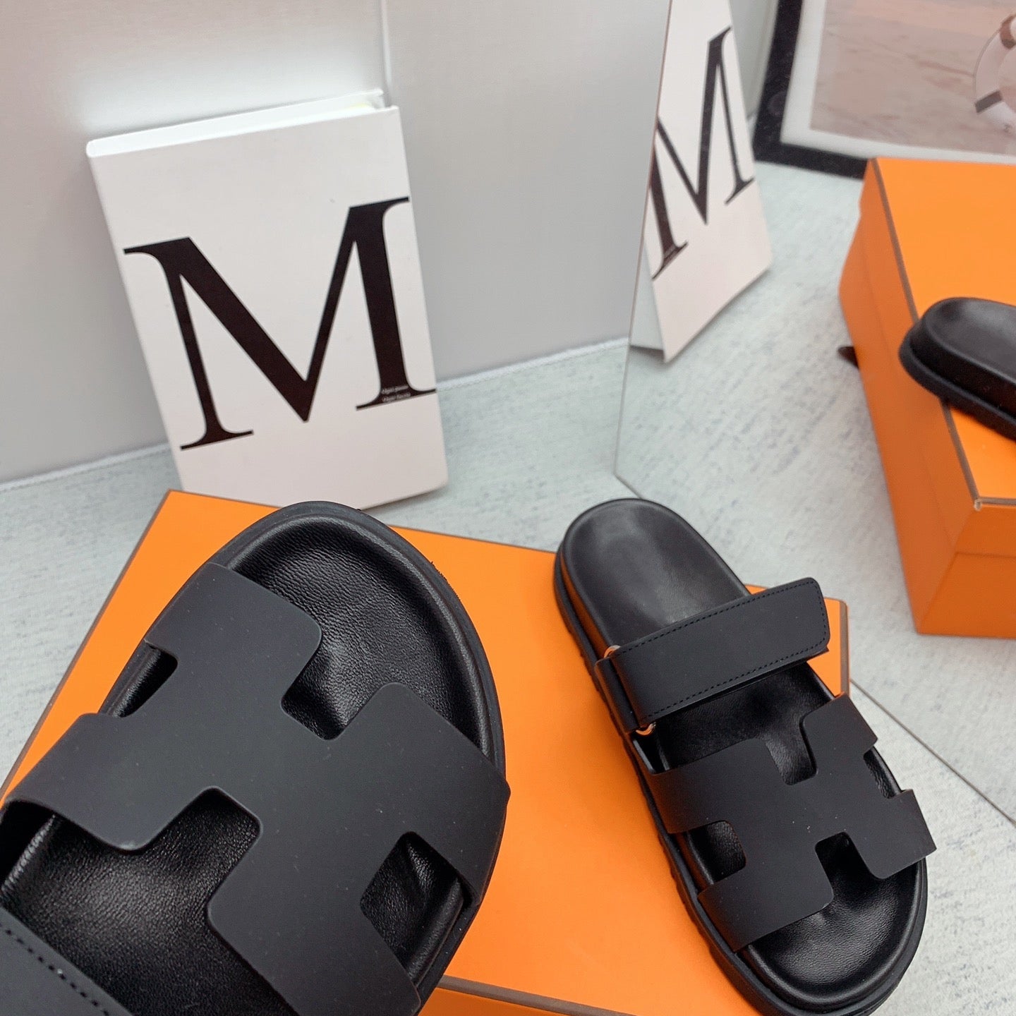 • Material: Sandal in calfskin with iconic "H" cut-out.