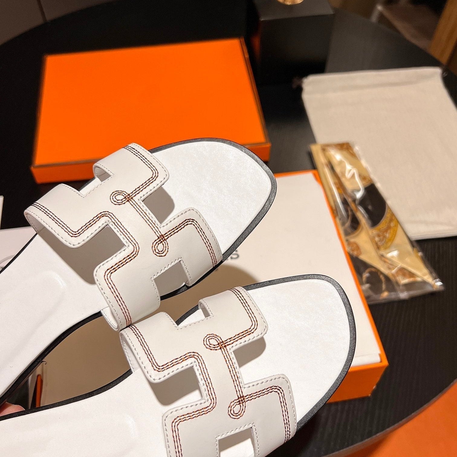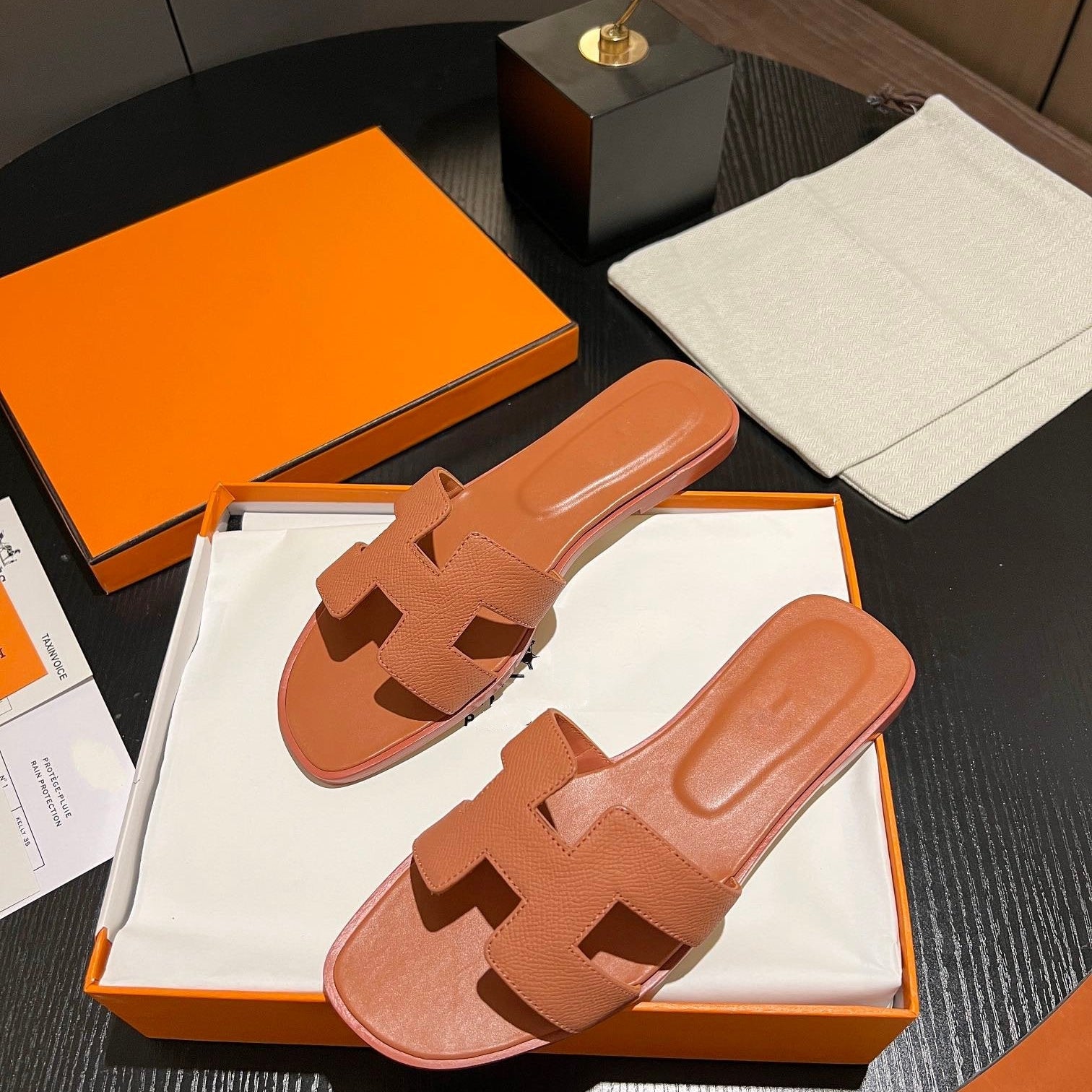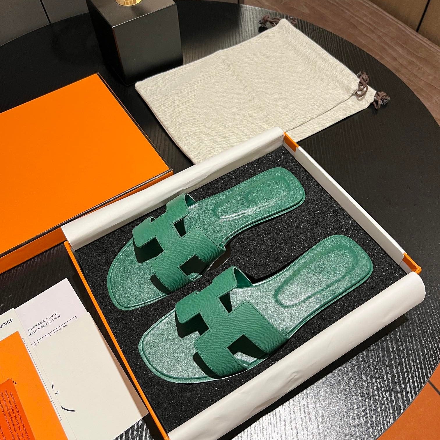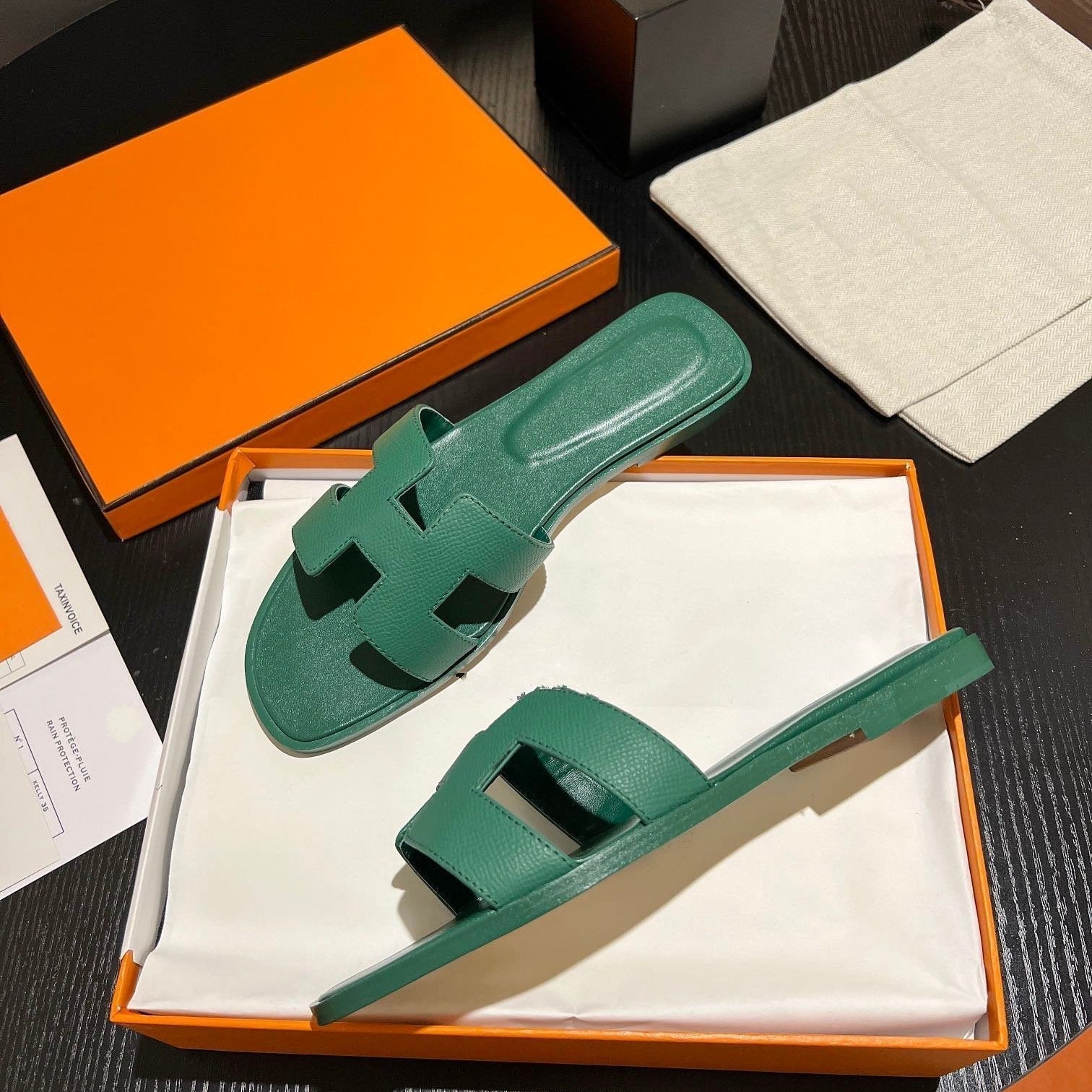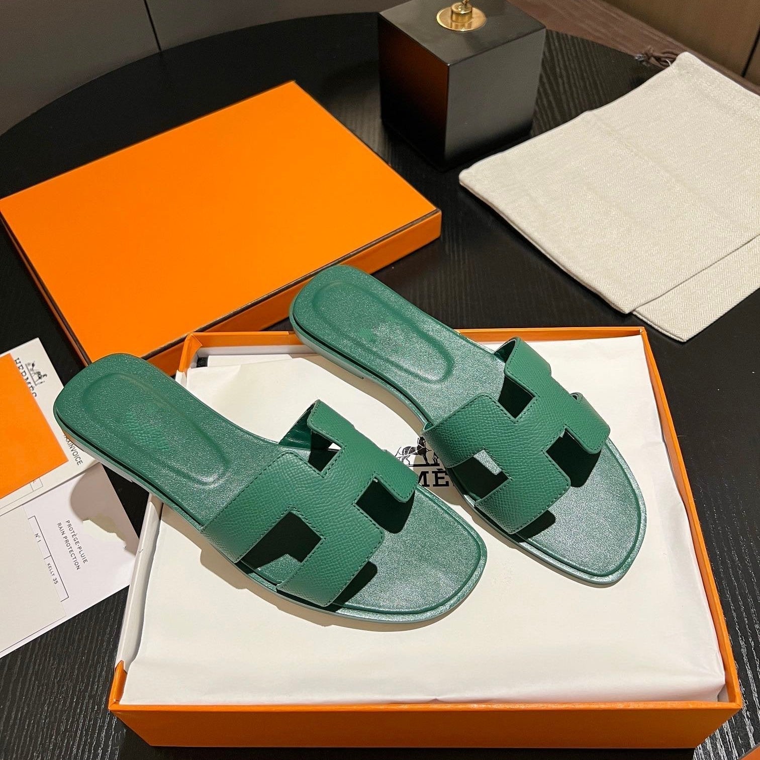 • Material: Sandal in calfskin with iconic "H" cut-out.