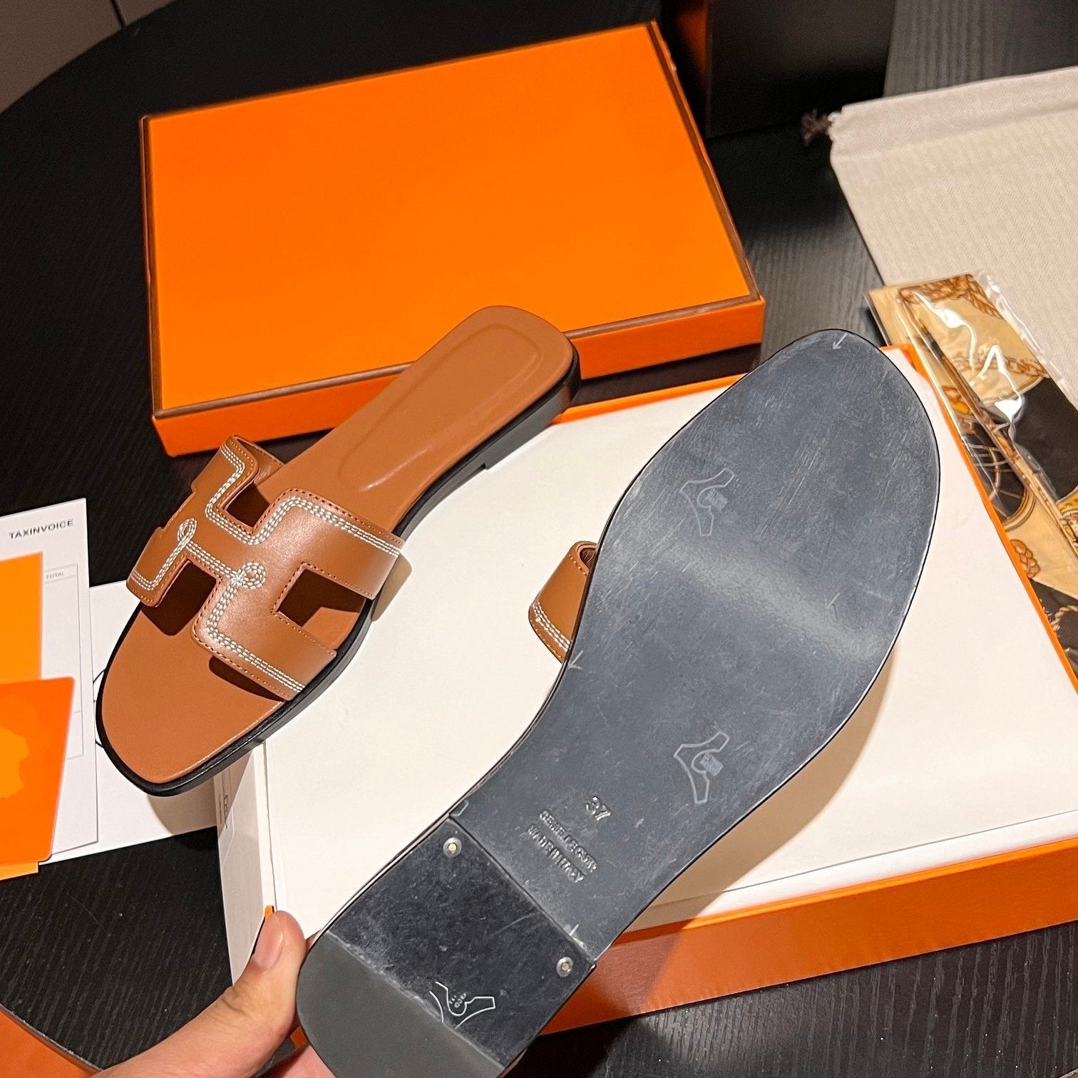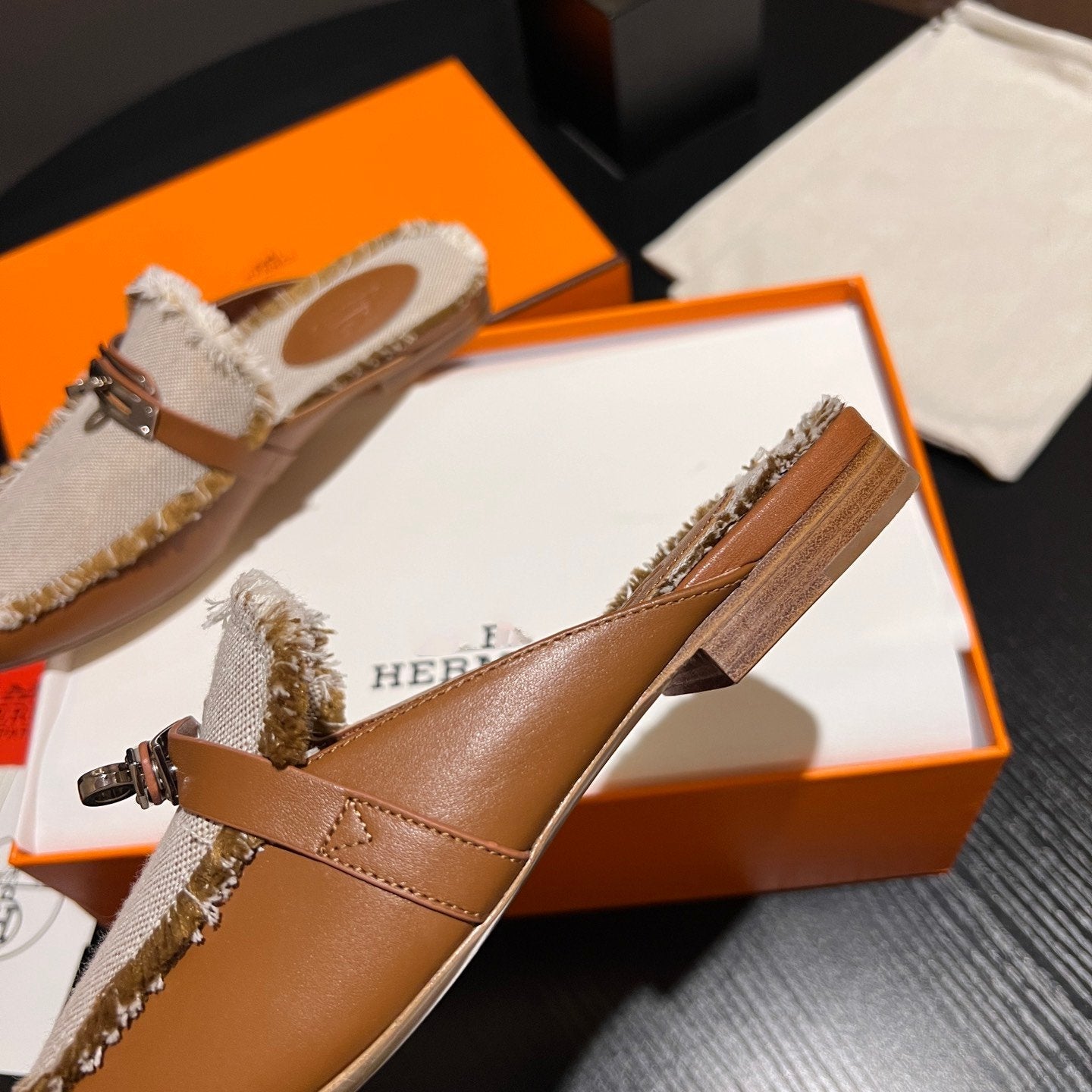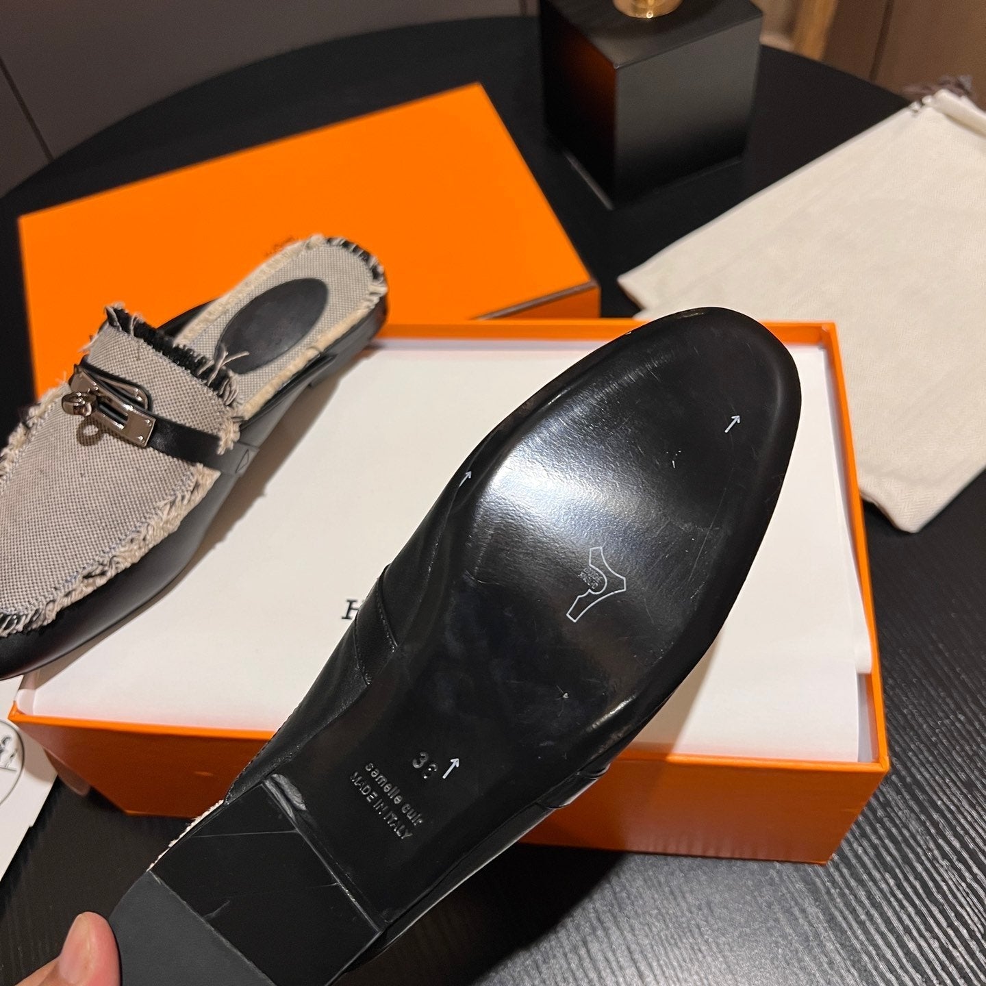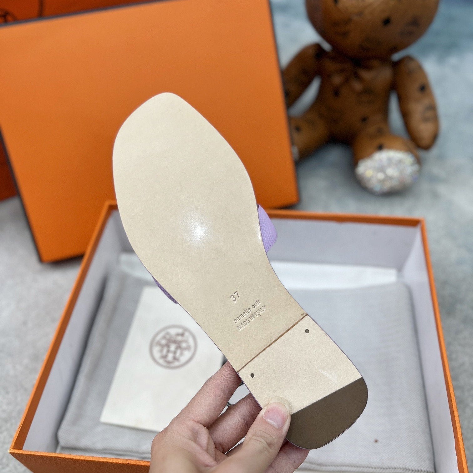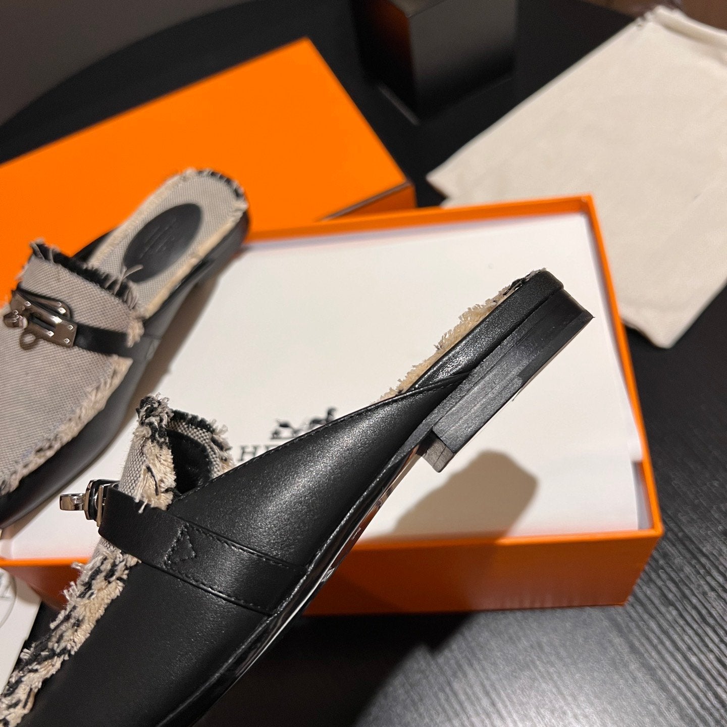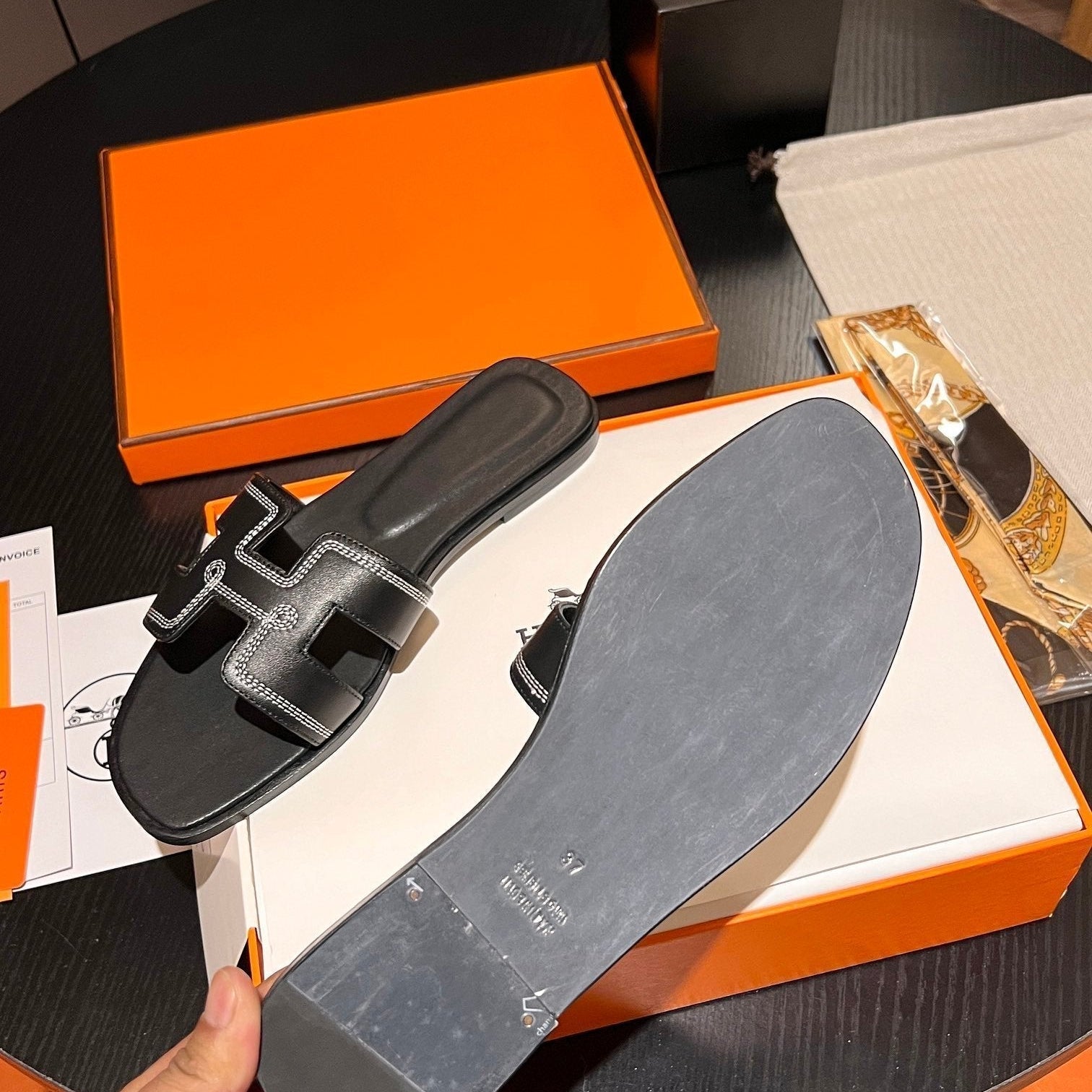 • Material: Sandal in calfskin with iconic "H" cut-out.