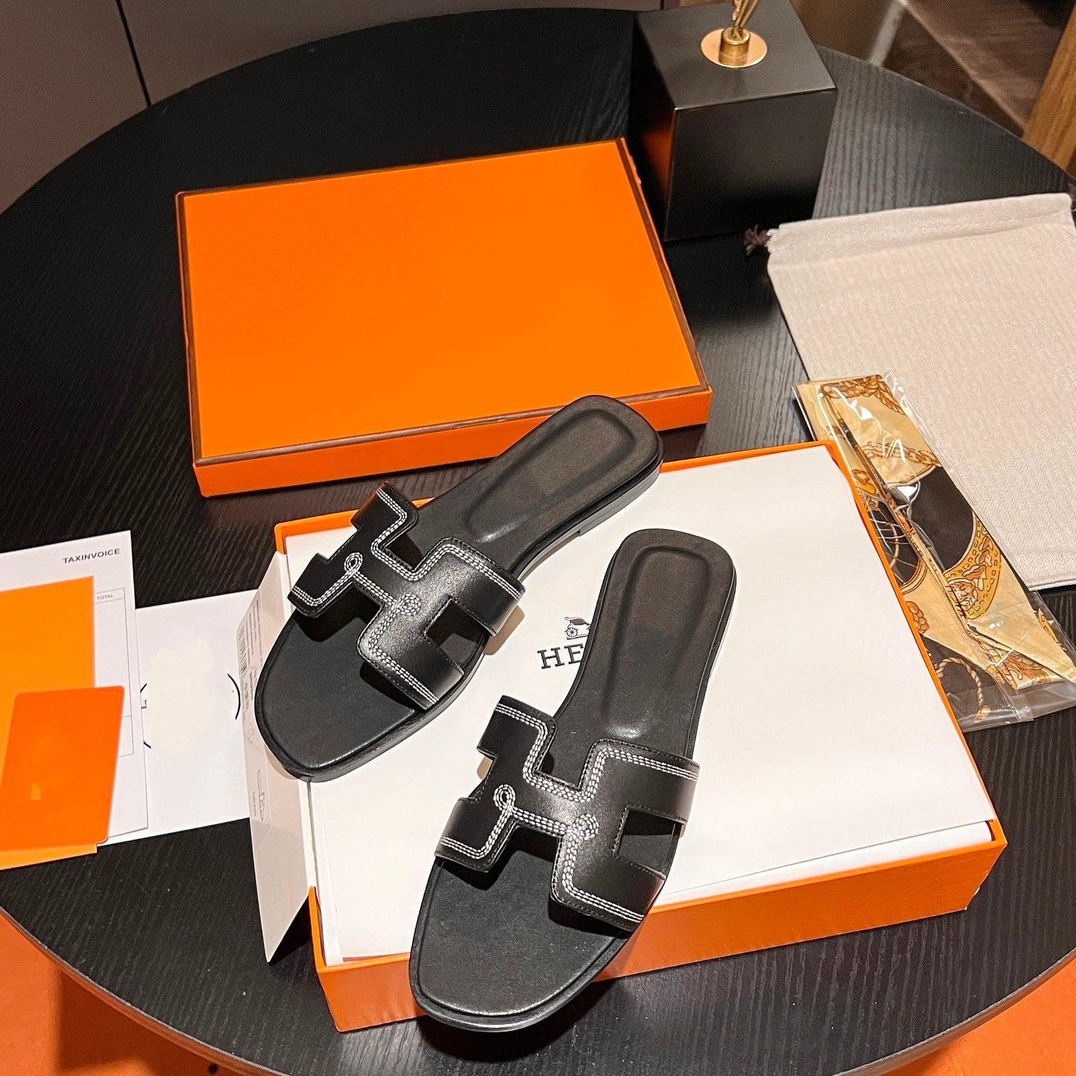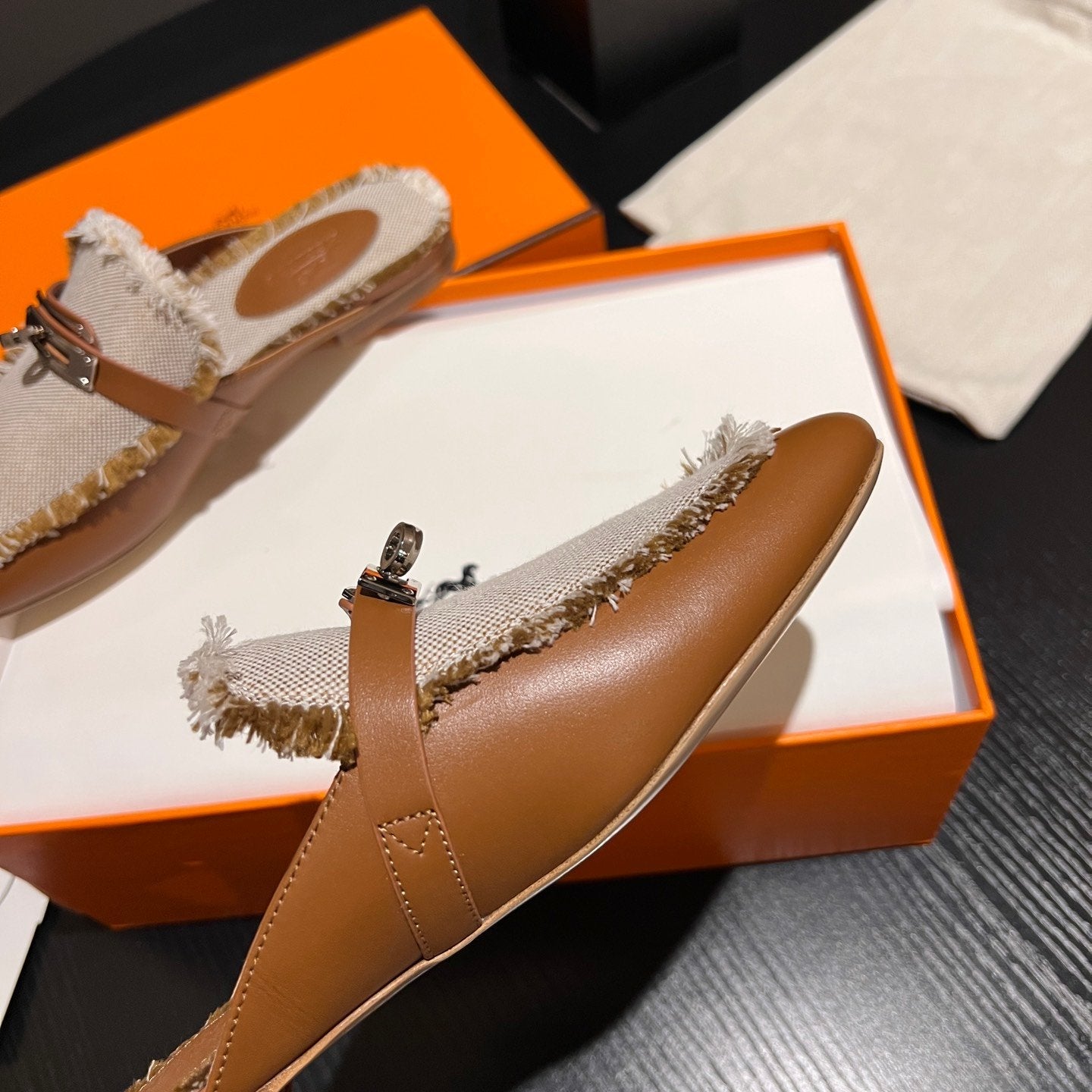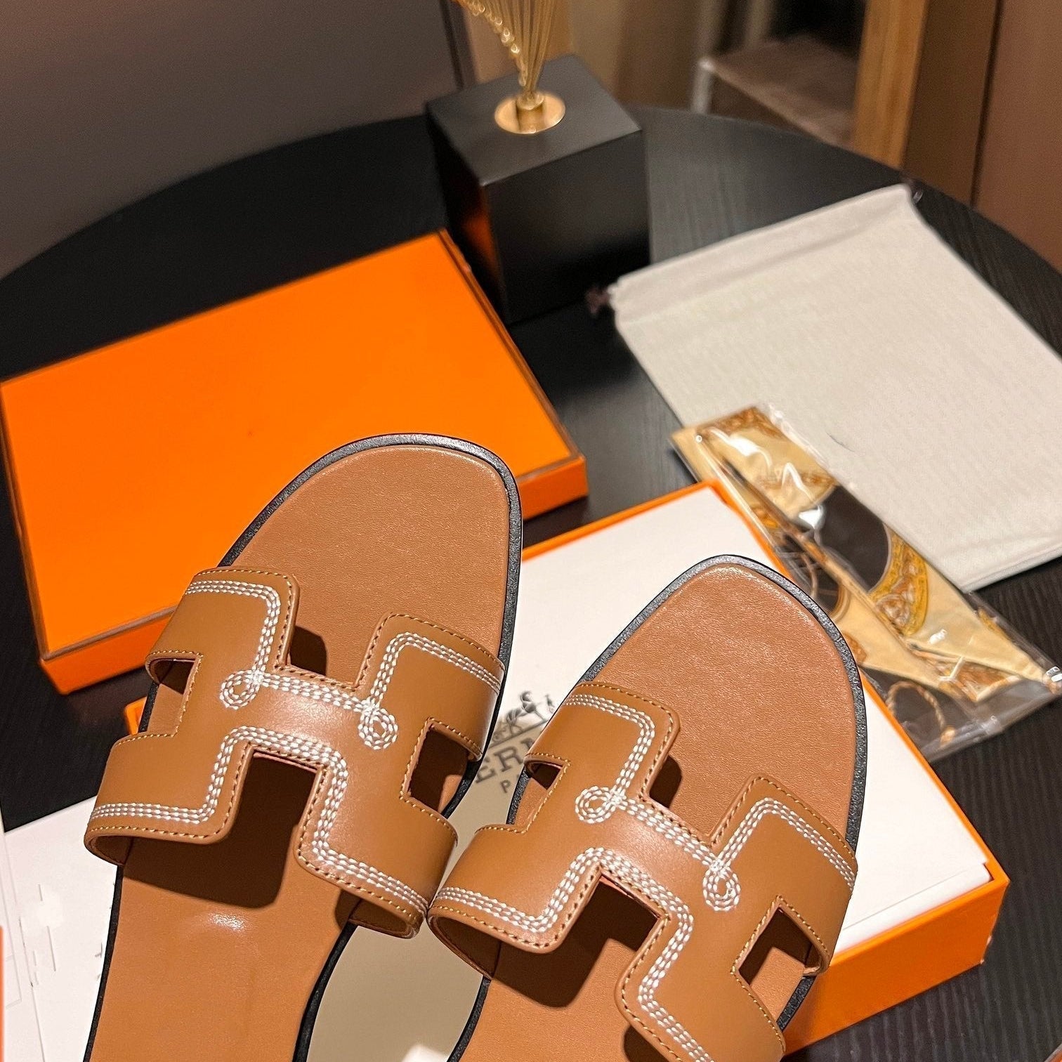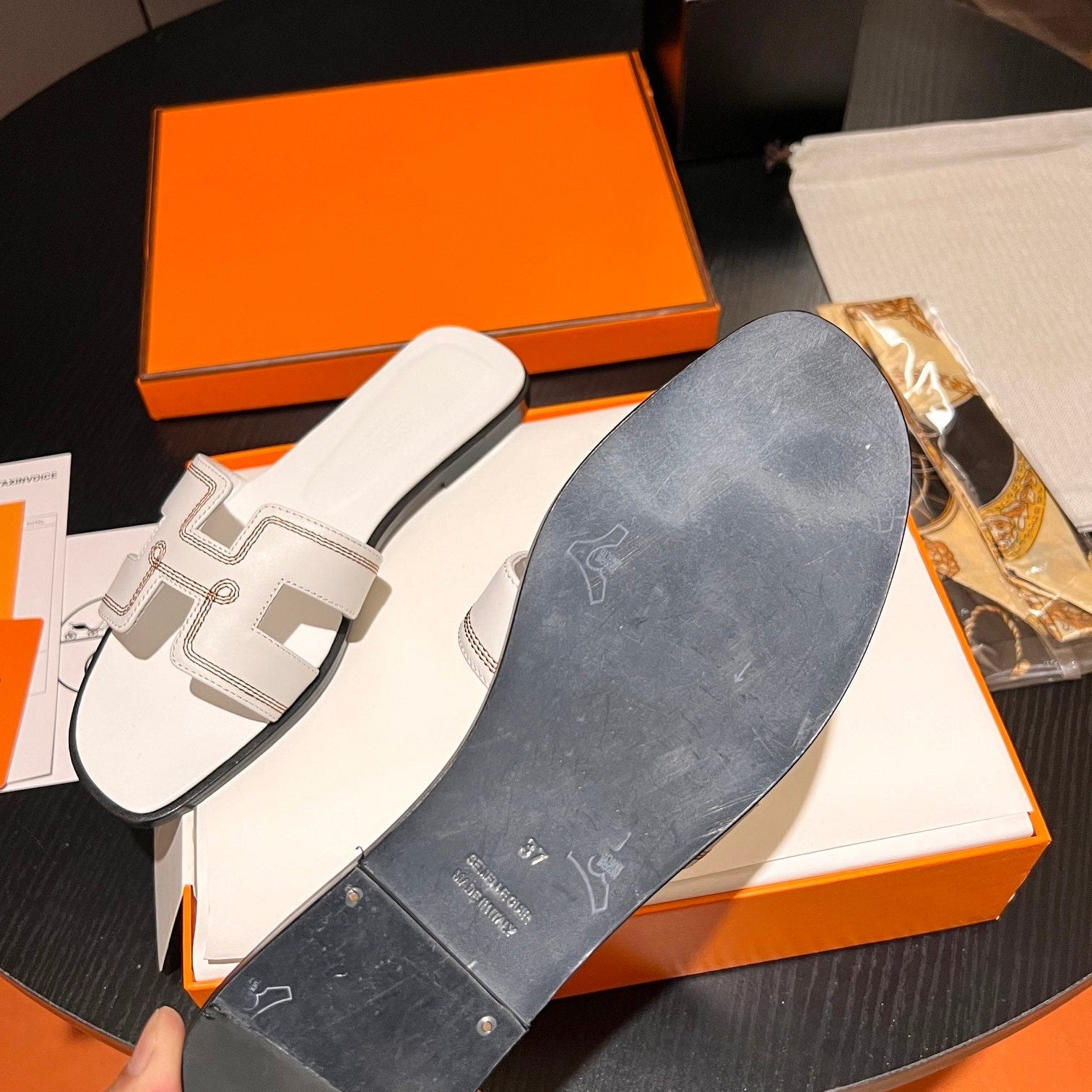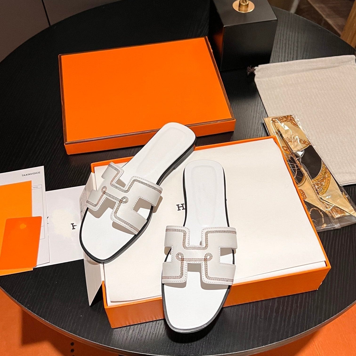 • Material: Sandal in calfskin with iconic "H" cut-out.