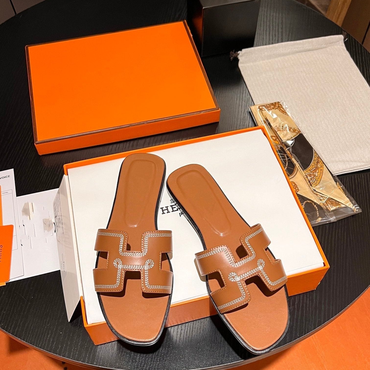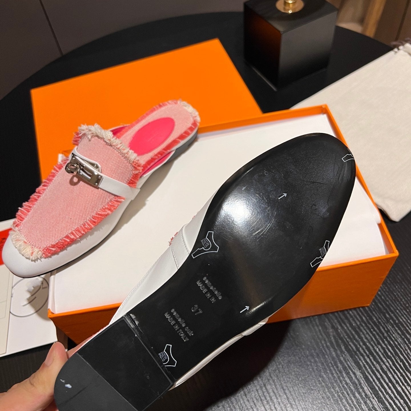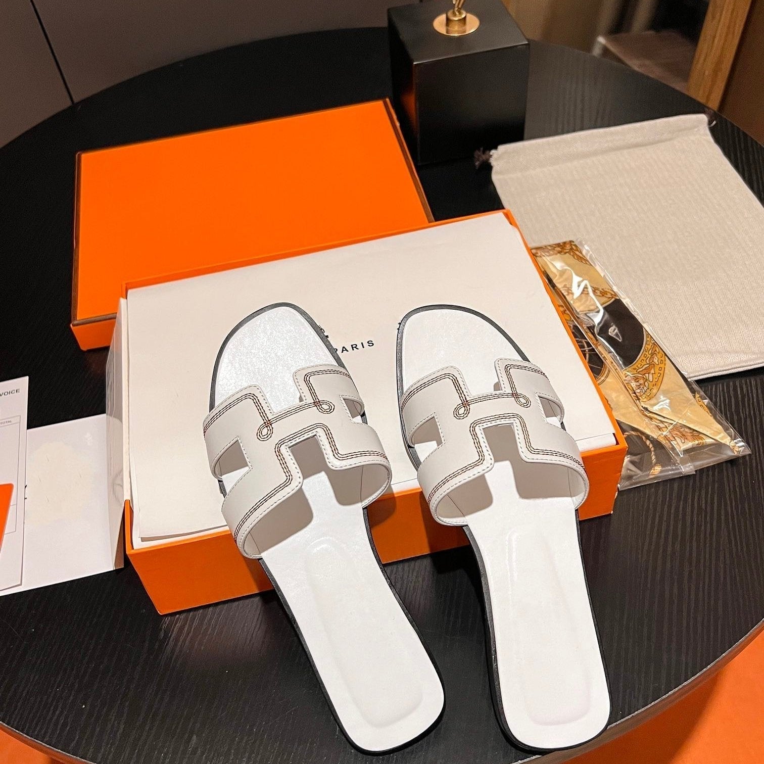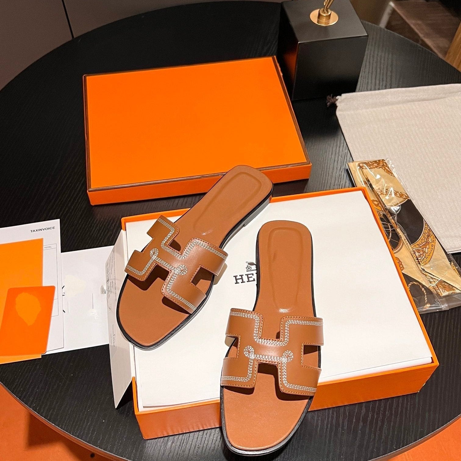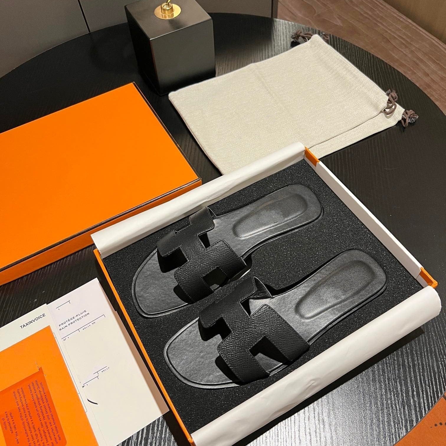 • Material: Sandal in calfskin with iconic "H" cut-out.