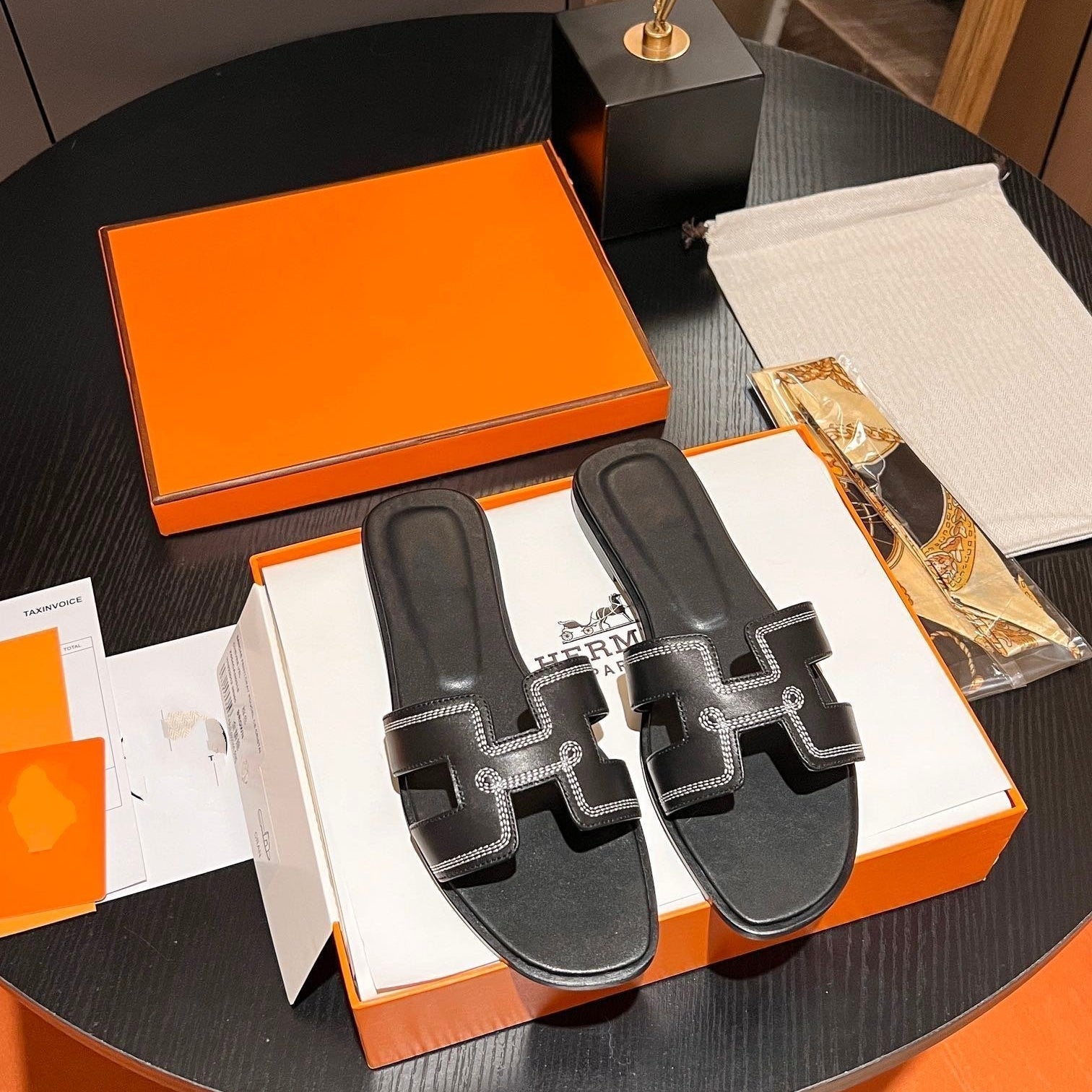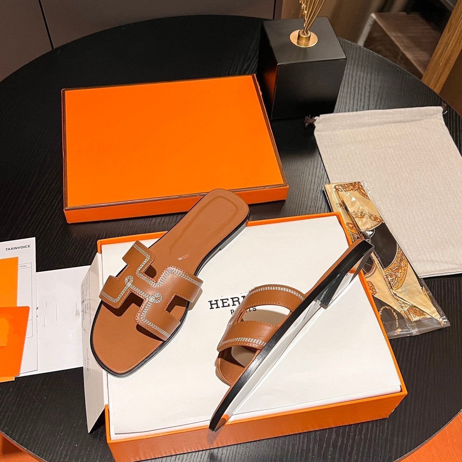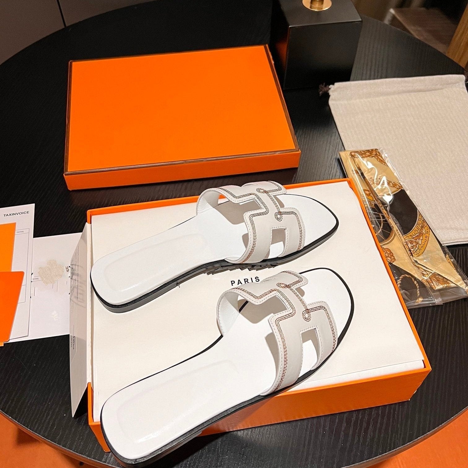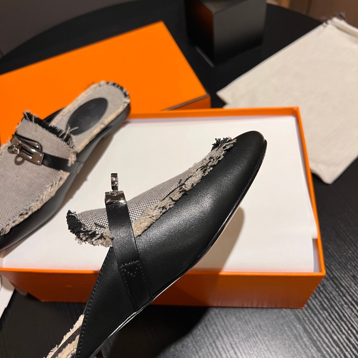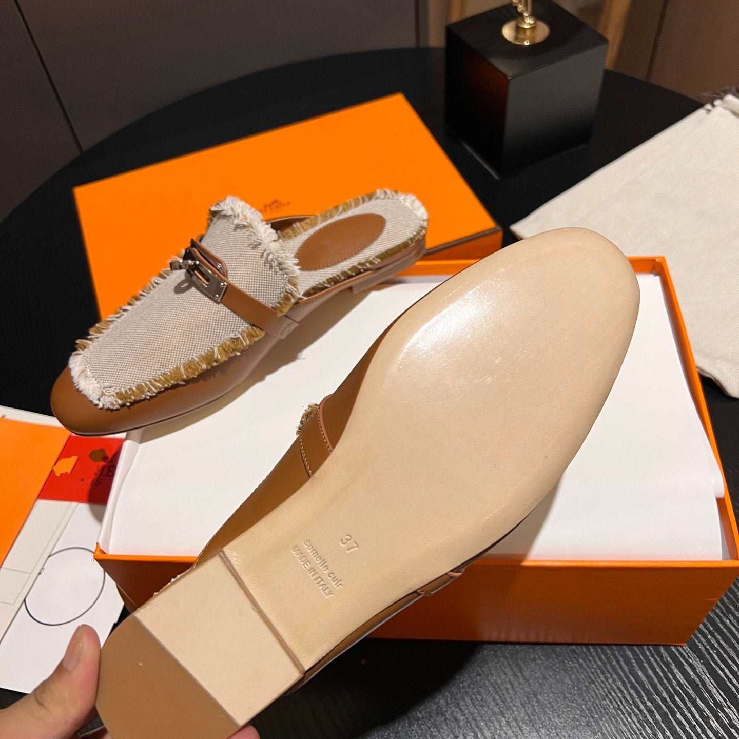 • Material: Sandal in calfskin with iconic "H" cut-out.