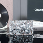 25C Flap Bag 21cm Dense Silver Sequin White Calfskin