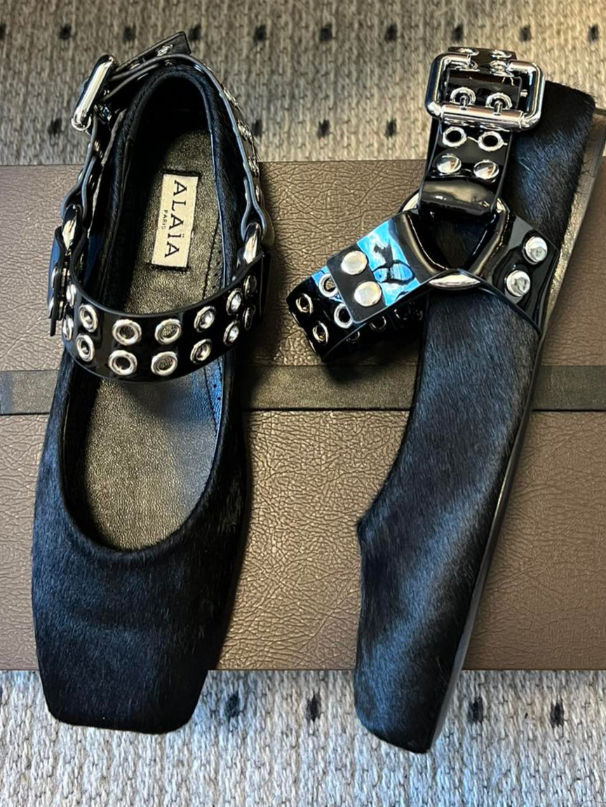 Alaia 25 Biker Ballet Flats Black Horsehair Sheepskin 303729