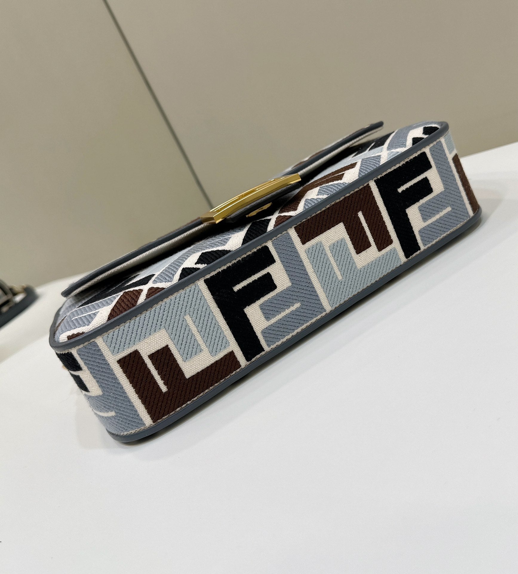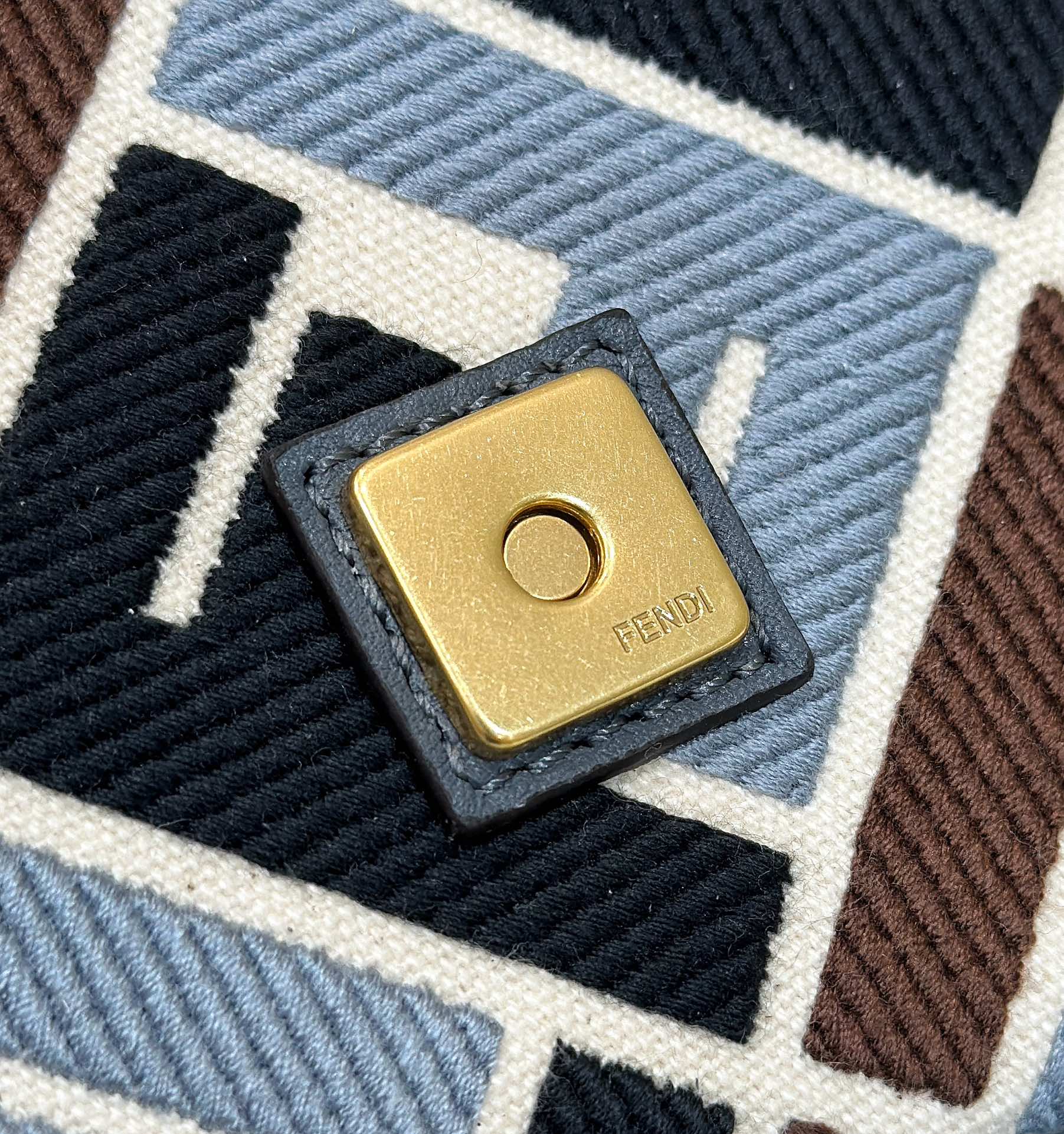 BAGUETTE CANVAS 27 BAG BLACK STRAP WITH MULTICOLOUR EMBROIDERY GOLD HARDWARE