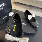 BALLET FLAT BLACK LAMBSKIN WITH WHITE BOW