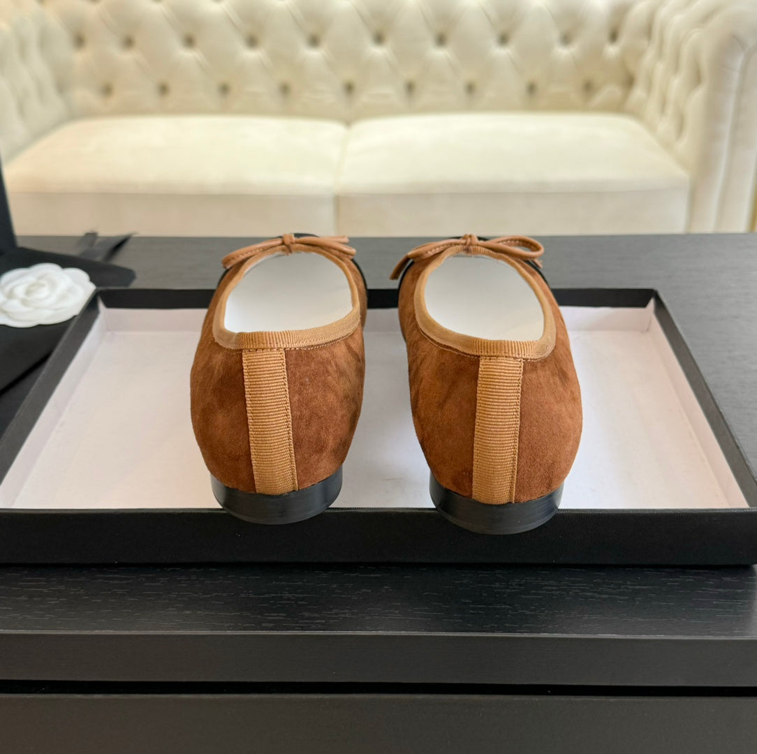 ballet flat dark brown suede black canvas