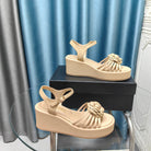 Camellia Slide Wedge Sandal Beige Cream Lambskin