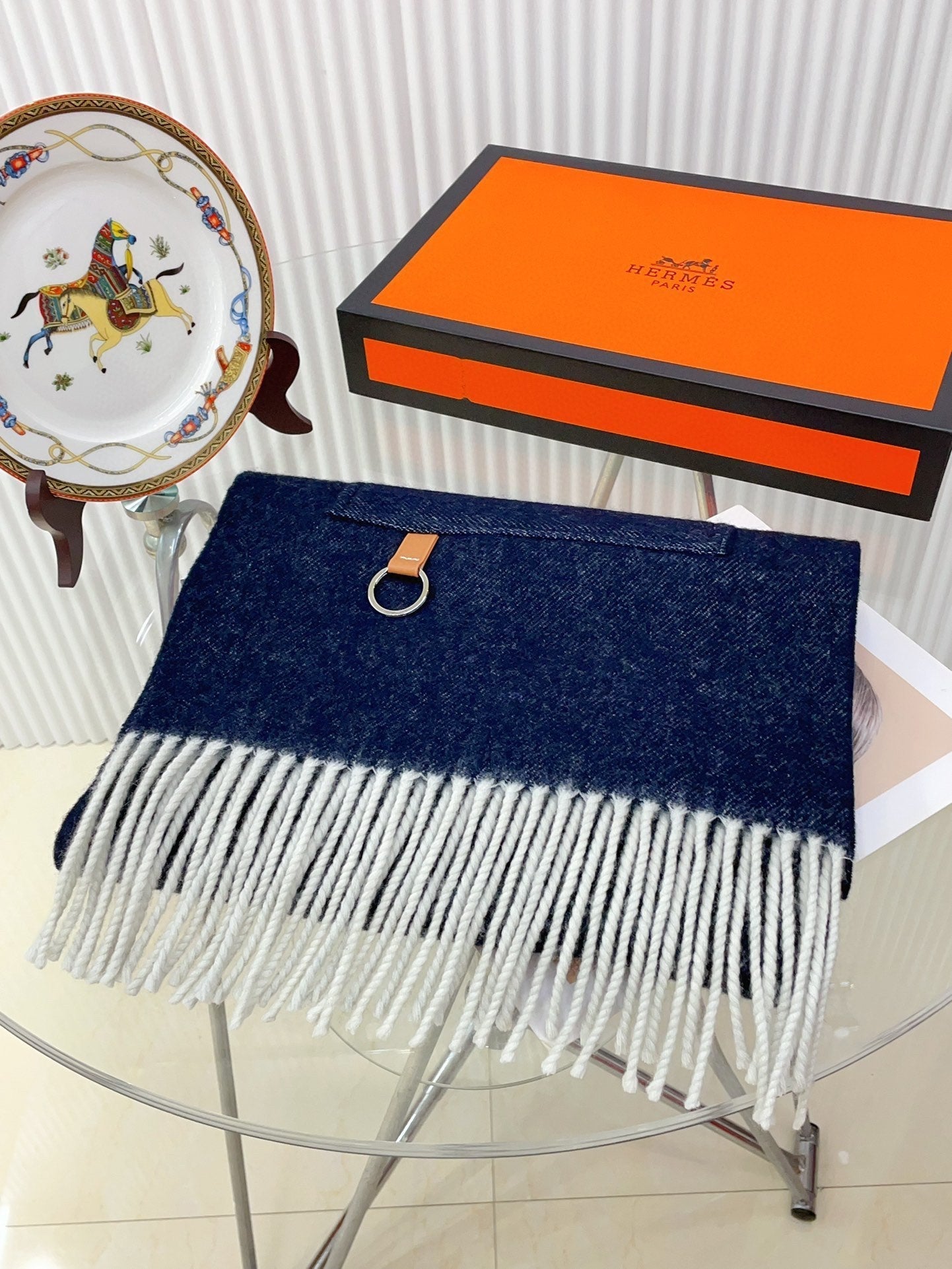 Cargo muffler Scarf 190 CM Navy Blue Wool 375381