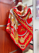 Carré Harnais De Cœur Scarf 140 CM In Red Colorful Cashmere And Silk 335858