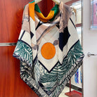 Cavalier en Formes shawl 140 CM In Duck Neck Blue Colorful Cashmere And Silk 331713