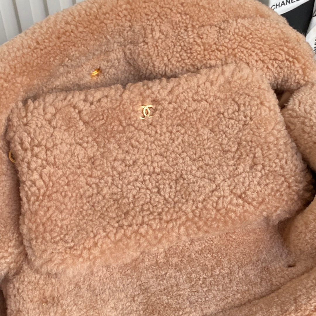 CC 24K Hobo 22 Bag 39cm Brown Wool Fur