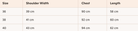 La anchura se mide de lado a lado, por debajo de las axilas, cuando la prenda está extendida.
