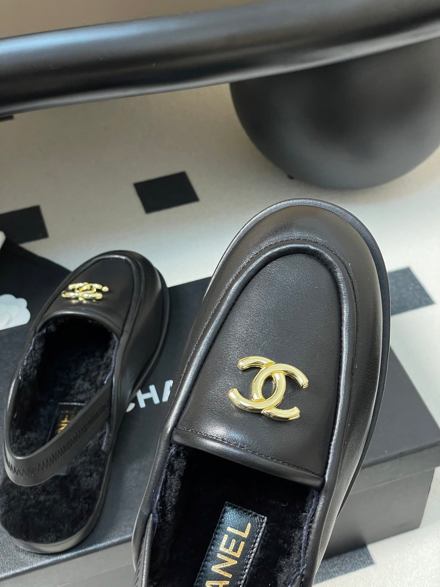 CC 25A Slingback Loafer Black Sherpa Calfskin