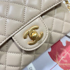 CC 25P Mini Flap Bag 20cm Top Handle Beige Calfskin Gold Hardware