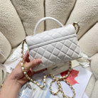 CC 25P Mini Flap Bag 20cm Top Handle Cream Calfskin Gold Hardware