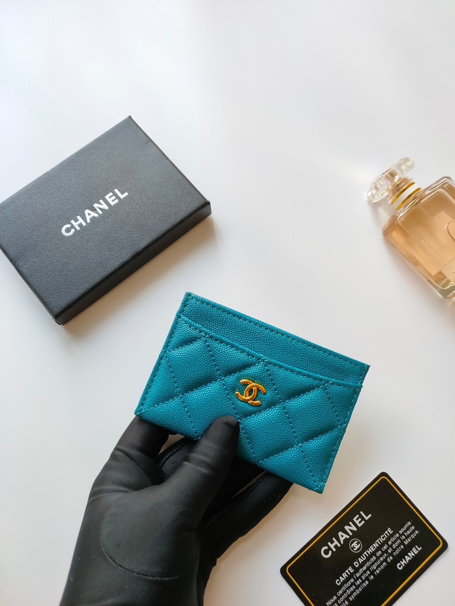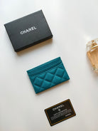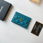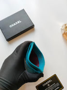 CC CARD HOLDER 11.2 SAPPHIRE GRAINED CALFSKIN GOLD ICON