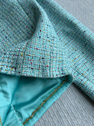 CC 25 Coat Blue-Green Round-Neck Wool Acrylic