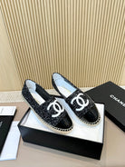 cc espadrilles black white tweed black patent calfskin