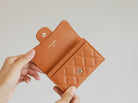 CC FLAP CARD HOLDER 11.3 ORANGE GRAINED CALFSKIN GOLD ICON
