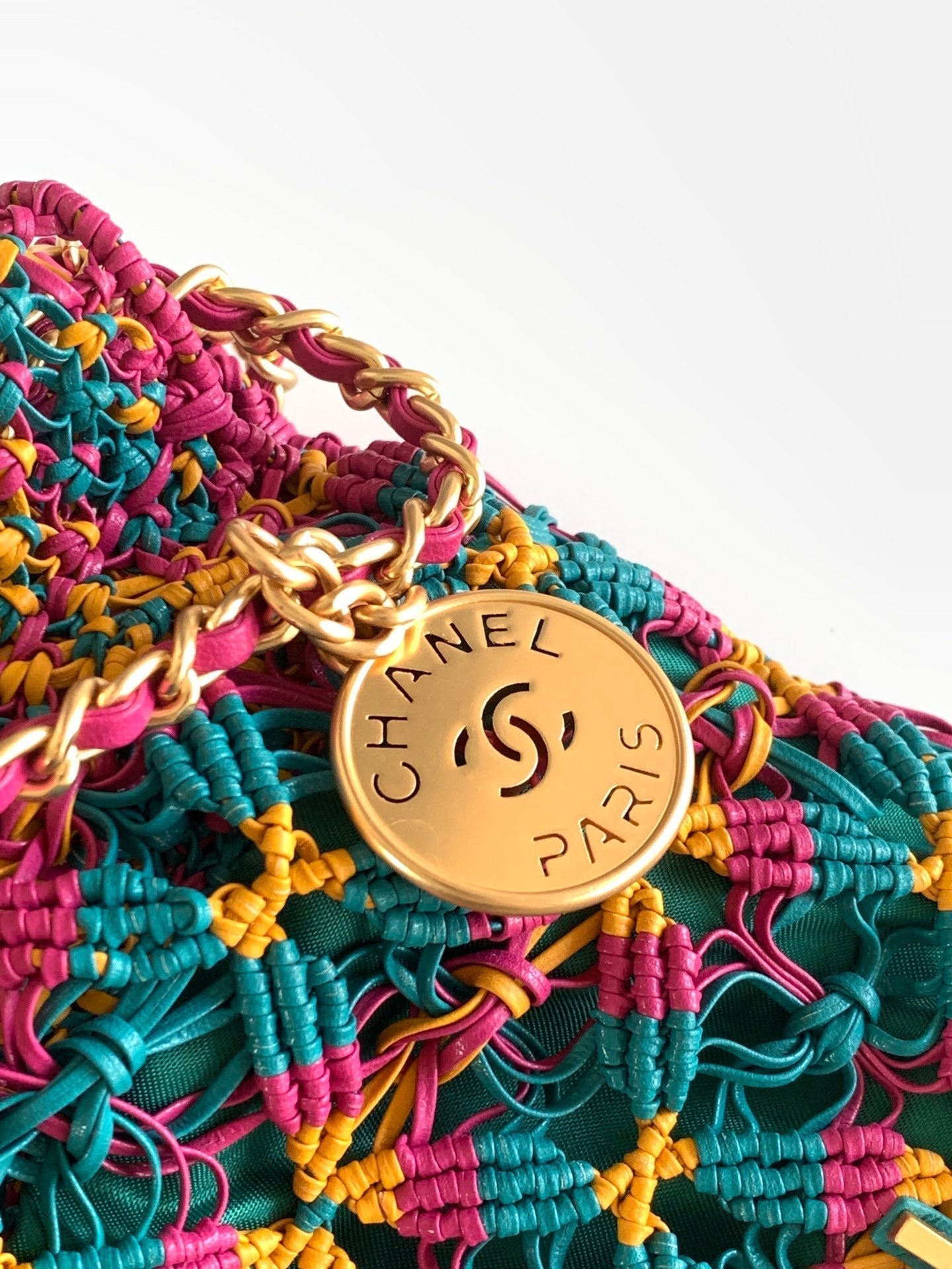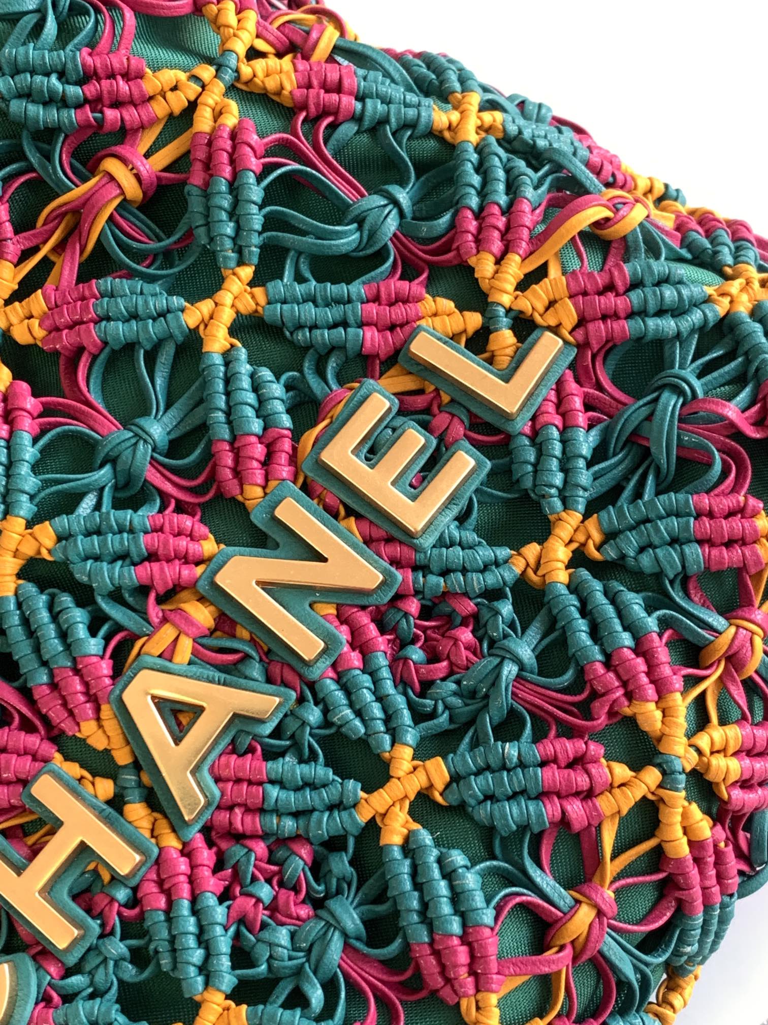CC Mini Macrame 22 Hobo Bag 19cm Multicolor Green Calfskin Gold Hardware