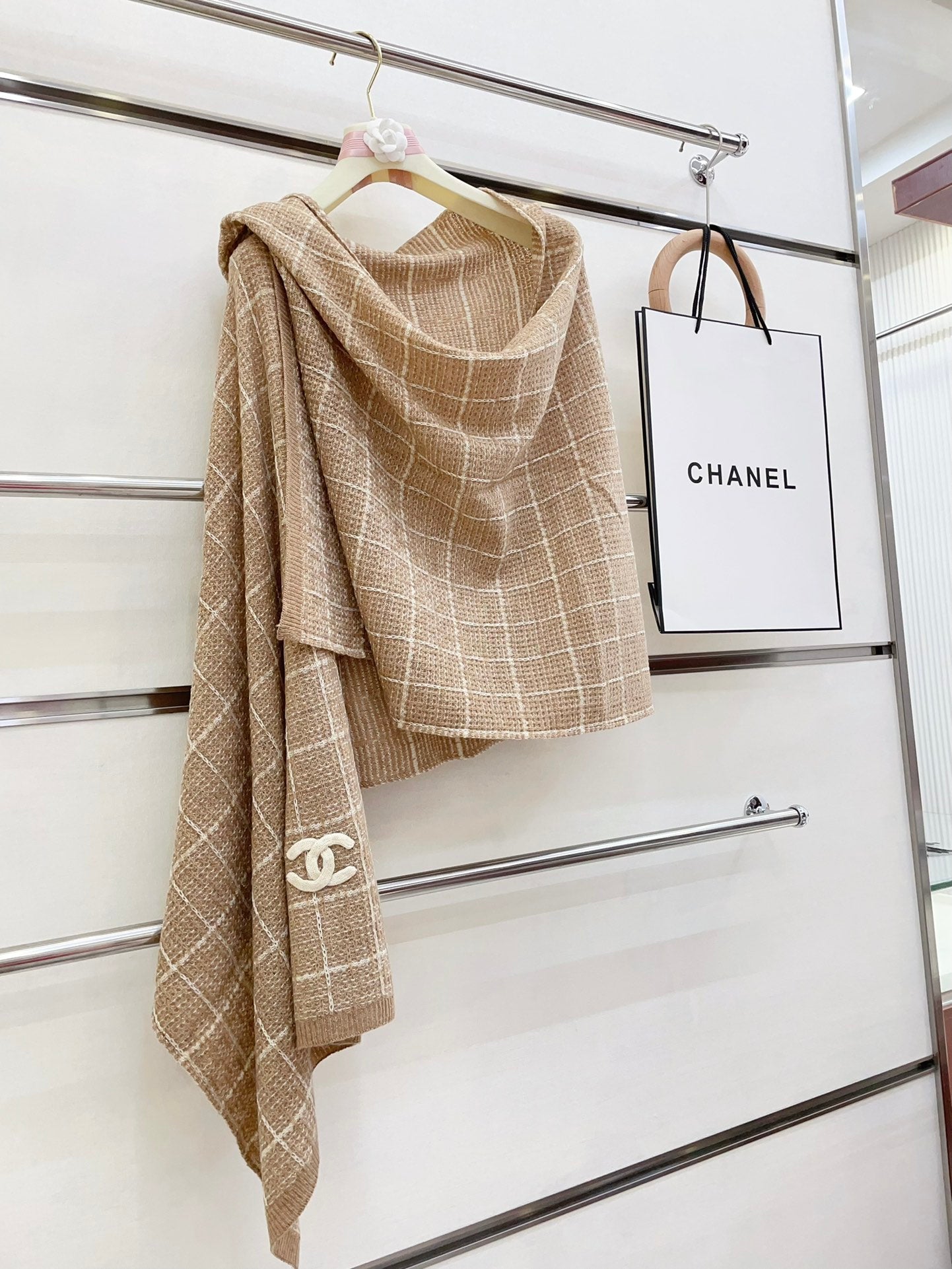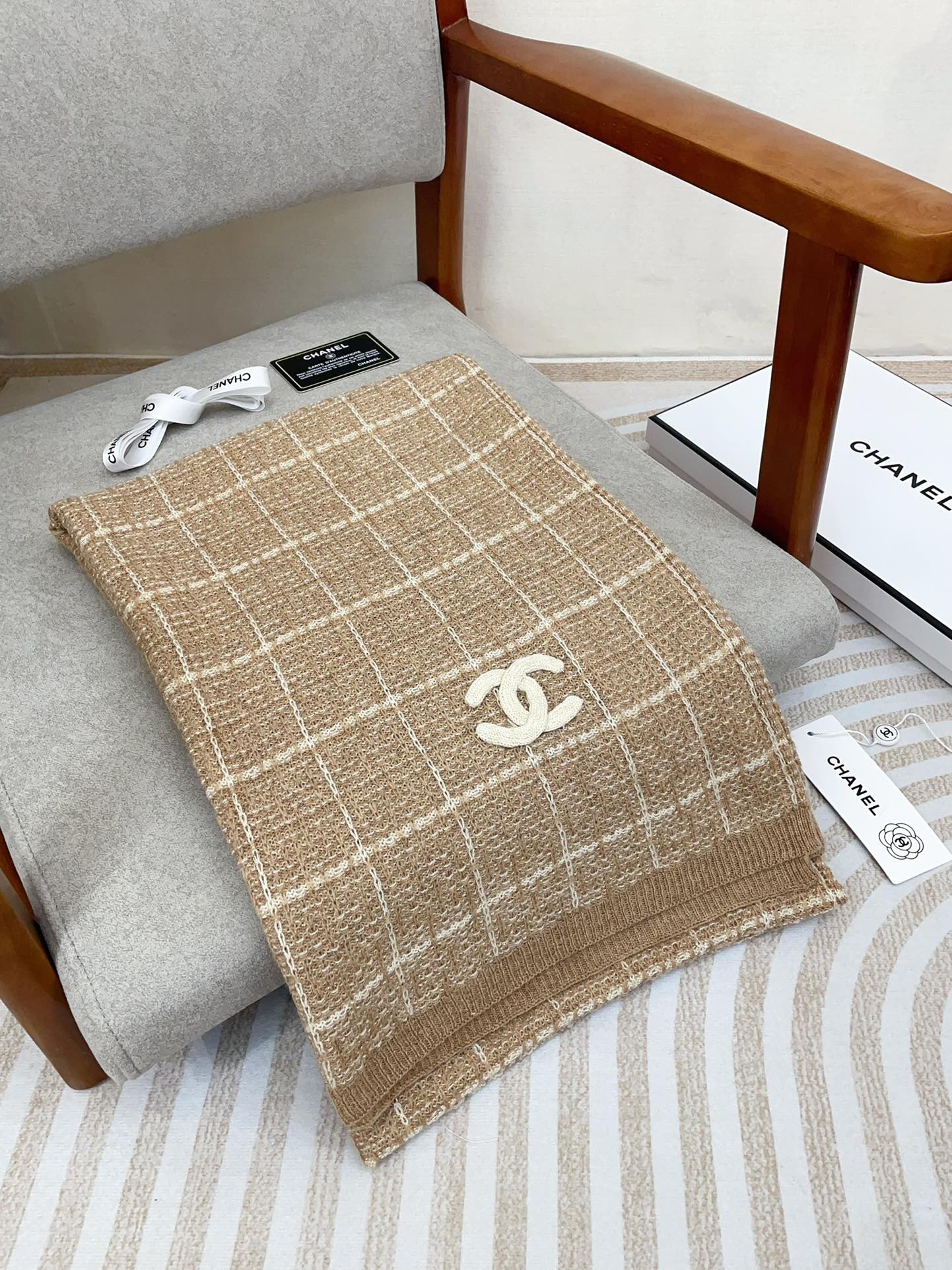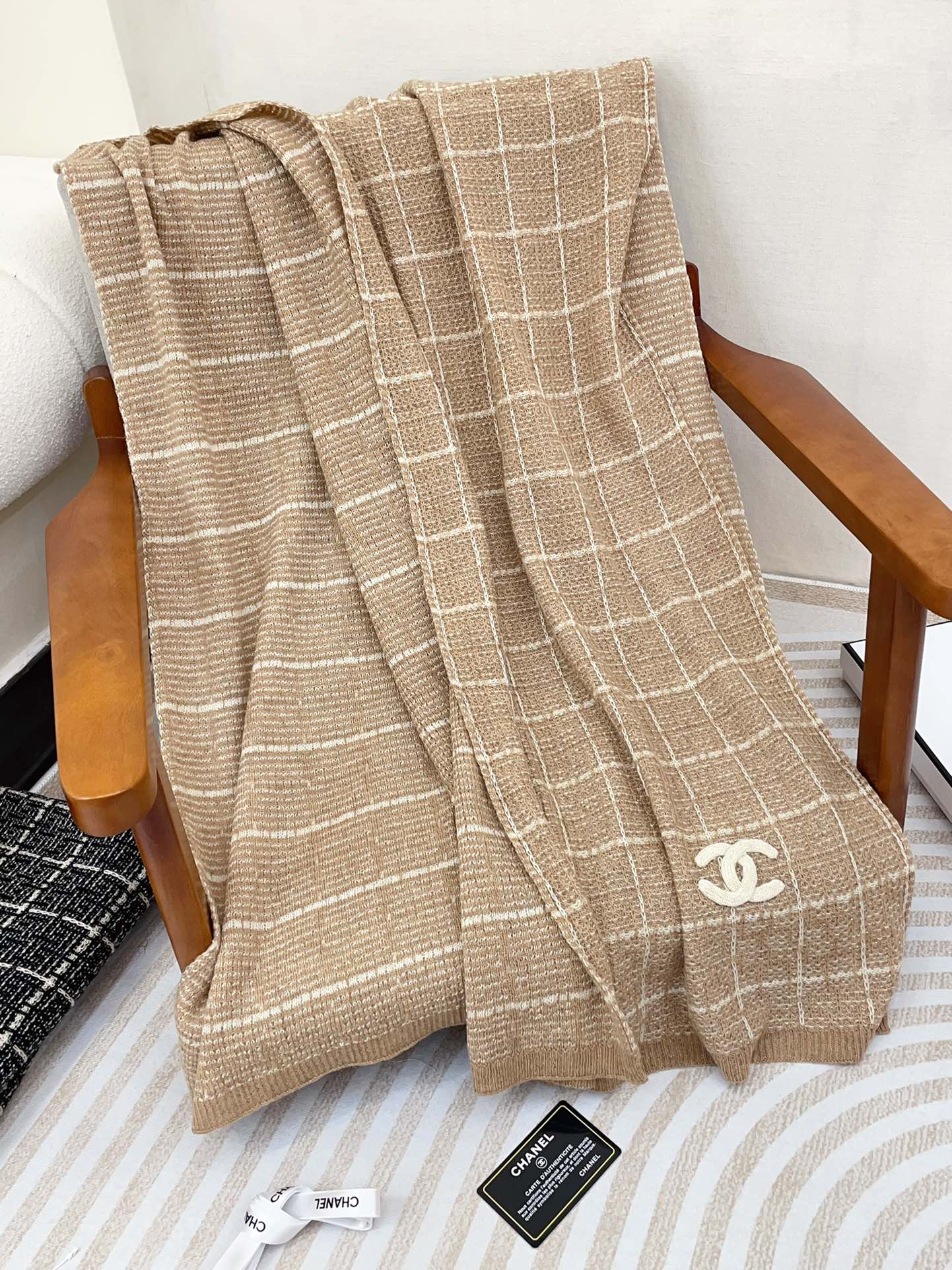 CC Scarf 180 CM In Light Brown With White Stripes Cashmere 415179