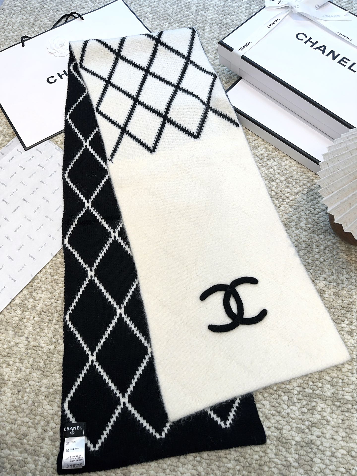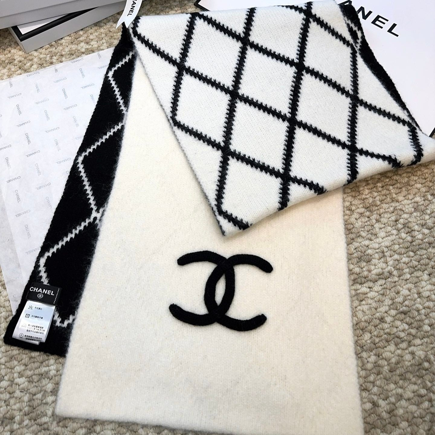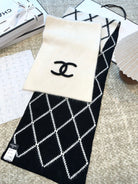 CC Scarf 180 CM In White Mix Black Cashmere And Fleece Wool Mix Mulberry Silk 413700