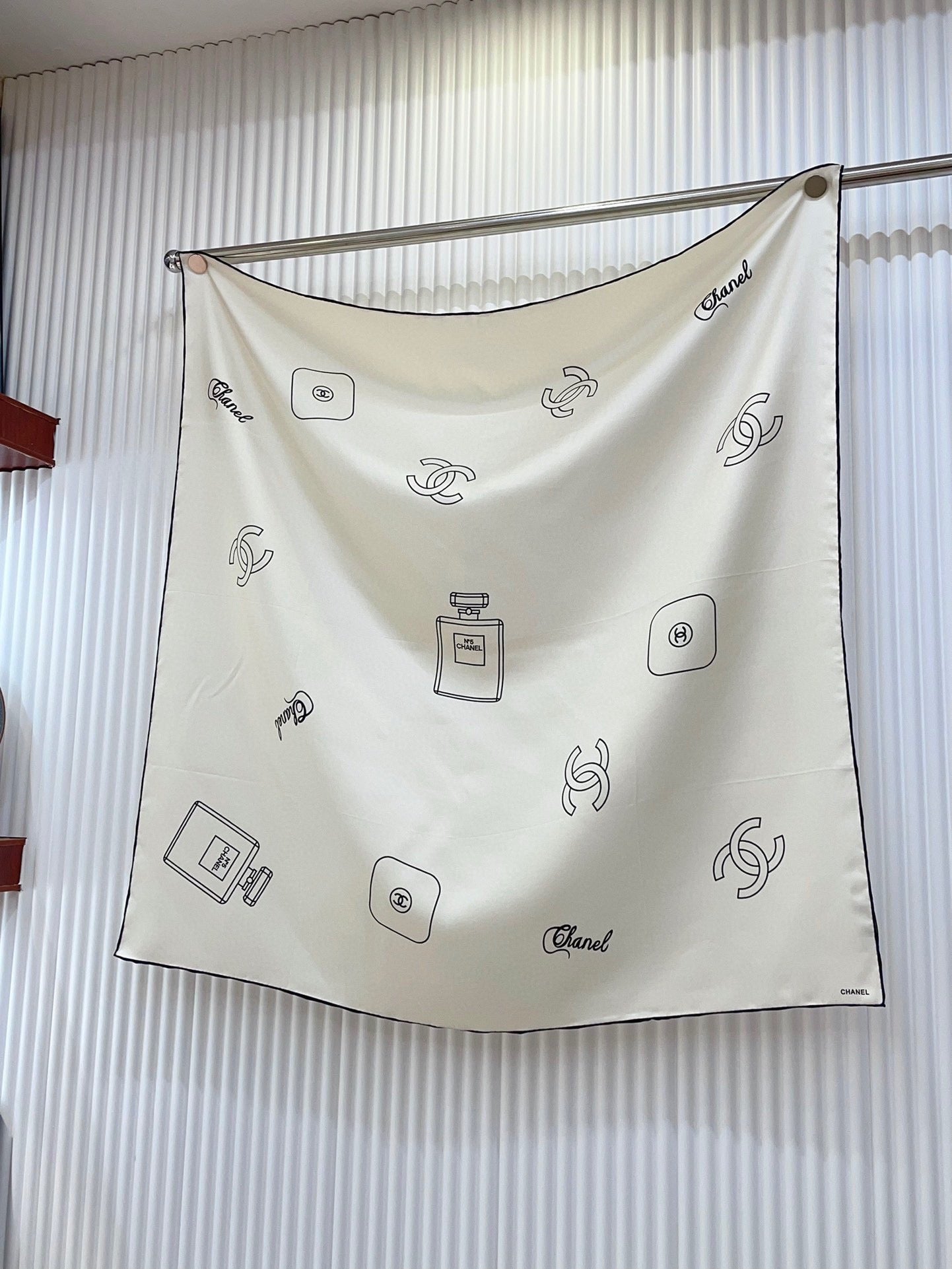 CC Square Scarf 90 CM In White Silk Twill 335845