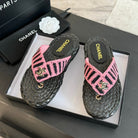 cc thong sandal striped pink black satin fabric