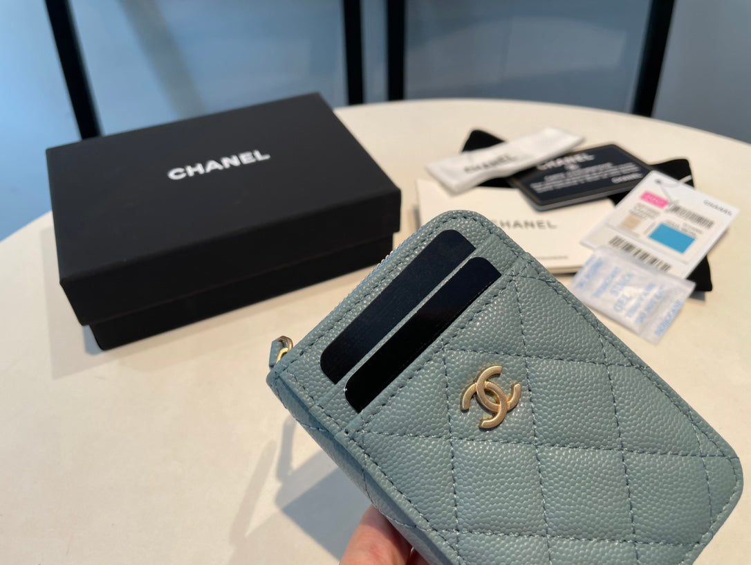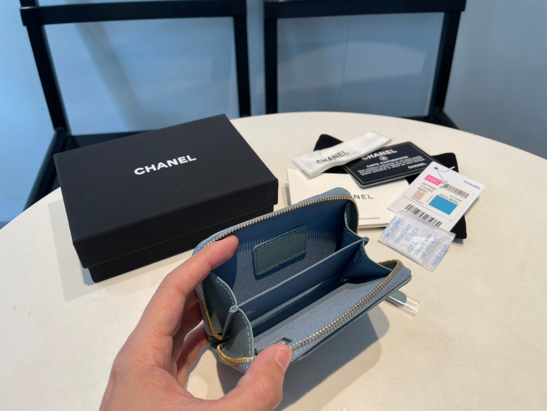 CC ZIPPED COIN PURSE 11 TEAL GRAINED CALFSKIN