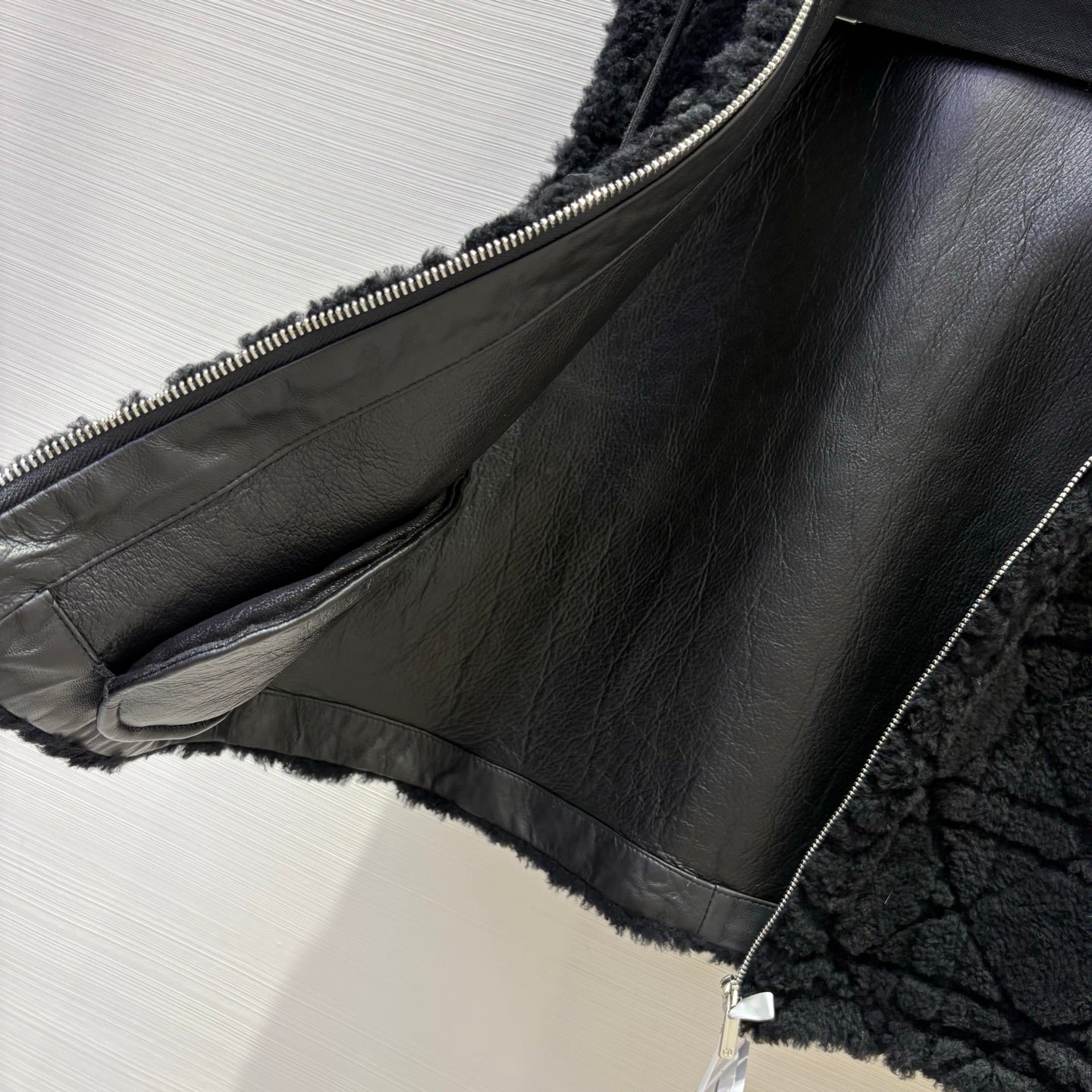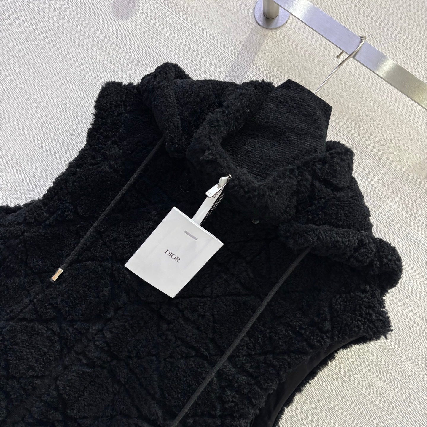 CD 25 Hooded Vest Leather And Fur Ivory White