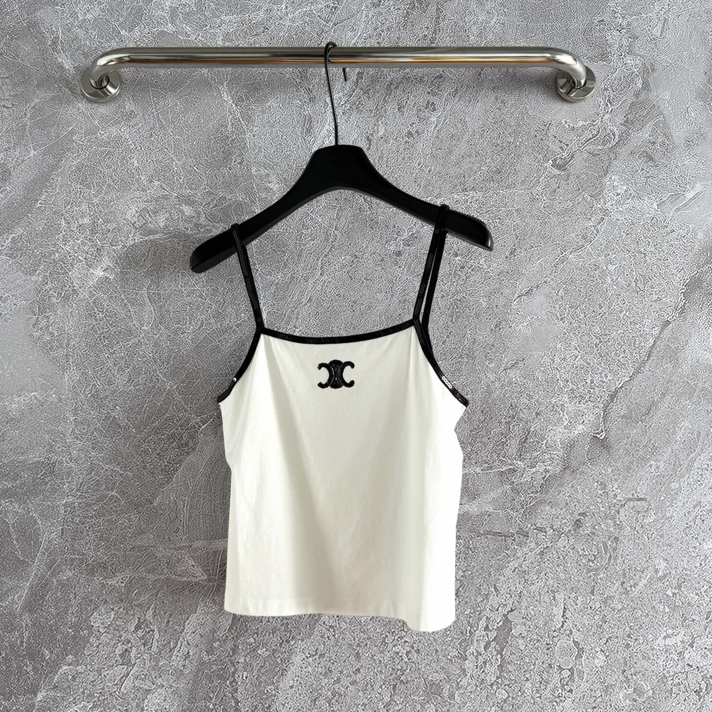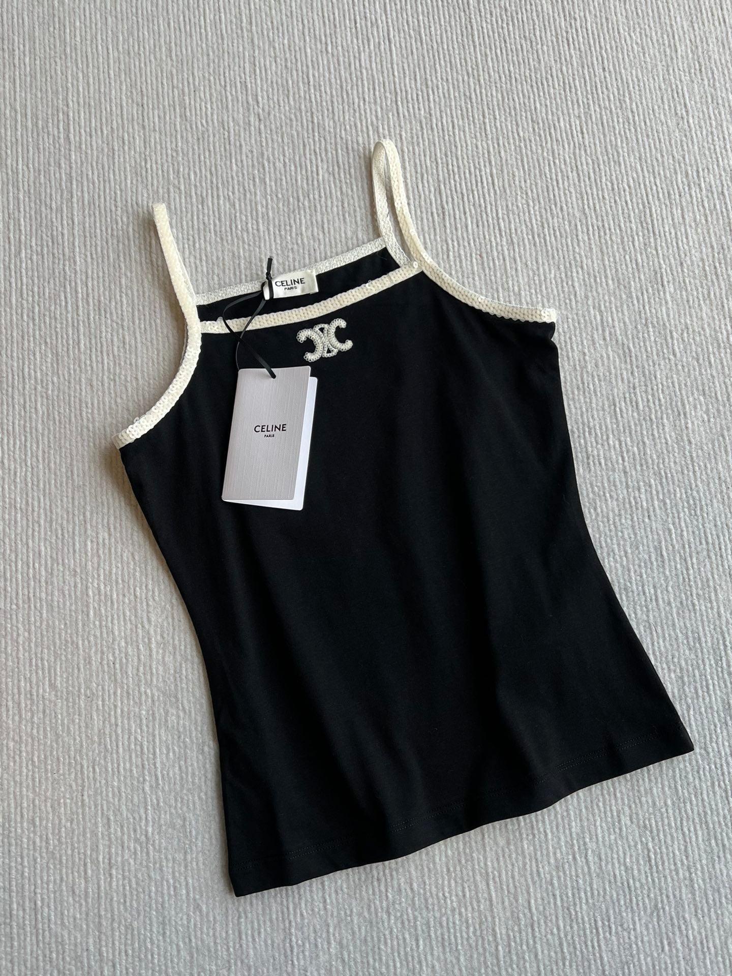 Celine 25 Beaded Camisole White and Black Cotton
