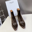 CELINE 25 Cowboy Boots Dark Brown Suede 434417