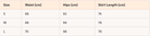 La longitud de las mangas se mide desde el hombro hasta el final de la muñeca.